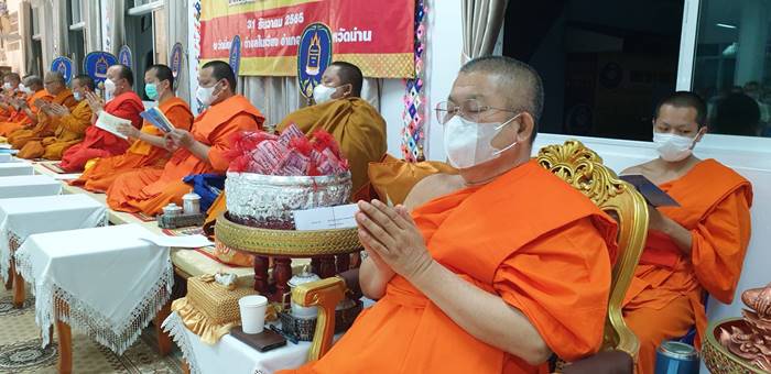 โอกาสนี้พระราชศาสนาภิบาล เจ้าคณะจังหวัดน่าน เจ้าอาวาสวัดพญาภู พระอารามหลวง สัมโมทนียกถา และนายวิบูรณ์ แววบัณฑิต ผู้ว่าราชการจังหวัดน่าน กล่าวอวยพรเนื่องในเทศกาลส่งท้ายปีเก่าต้อนรับปีใหม่ 2565 ที่วัดมิ่งเมือง โดยมีประชาชนและนักท่องเที่ยวมาร่วมโครงการเป็นจำนวนมาก สำหรับพิธีสวดมนต์ข้ามปี สมเด็จพระพระอริยวงศาคตญาณ สมเด็จพระสังฆราช สกลมหาสังฆปริณายก ได้ประทานไฟพระฤกษ์ให้กับวัดต่างๆ ทั่วราชอาณาจักรไทย เพื่อนำไปใช้จุดเทียนมงคลในพิธีสวดมนต์ข้ามปี เพื่อสร้างขวัญกำลังใจให้แก่พุทธศาสนิกชนที่มาเข้าร่วมพิธี และเป็นการเสริมสร้างสิริมงคลในการก้าวเข้าสู่พุทธศักราชใหม่ ประจำปี 2566 กองทุนสนับสนุนการสร้างเสริมสุขภาพ (สสส.) ร่วมกับ คณะสงฆ์จังหวัดน่าน สำนักงานพระพุทธศาสนาจังหวัดน่าน และเทศบาลเมืองน่าน ได้ร่วมจัดทำโครงการ ยกย่องเชิดชูเกียรติ ชุมชน และบุคคลต้นแบบ ลดละเลิกเครื่องดื่มดื่มแอลกอฮอล์จังหวัดน่านขึ้น ได้จัดเตรียมโล่ประกาศเกียรติคุณ จำนวน 51 โล่ เพื่อมอบให้กับ ชุมชน และบุคคลต้นแบบ ดังกล่าว