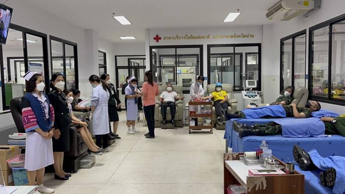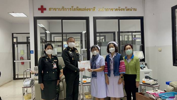 เมื่อวันที่ 6 มกราคม 2566 เวลา 09.30 น. ณ ธนาคารเลือด รพ.น่าน อ.เมืองน่าน จ.น่าน พล.ต.คณิศร อาสมะ ผบ.มทบ.38 จัดกำลังพล จิตอาสา ร่วมบริจาคโลหิต เพื่อถวายเป็นพระราชกุศล เนื่องในวันเนื่องในโอกาสวันคล้ายวันประสูติ สมเด็จพระเจ้าลูกเธอ เจ้าฟ้าสิริวัณณวรี นารีรัตนราชกัญญา และช่วยเหลือผู้ป่วยเจ็บ จำนวน 13 นาย ได้ปริมาณโลหิต ทั้งหมด 5,850 ซีซี ซึ่งเป็นไปตามนโยบายของกองทัพบก “ทหารเป็นที่พึ่งของประชาชน และเป็นการสร้างความภาคภูมิใจให้กับกองทัพบก