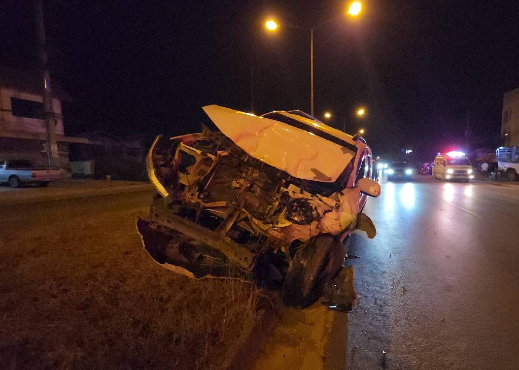Fortuner แหกโค้งชน 2 คันรวด เจ้าของนั่งกินก๋วยเตี๋ยวรอดตายหวุดหวิด