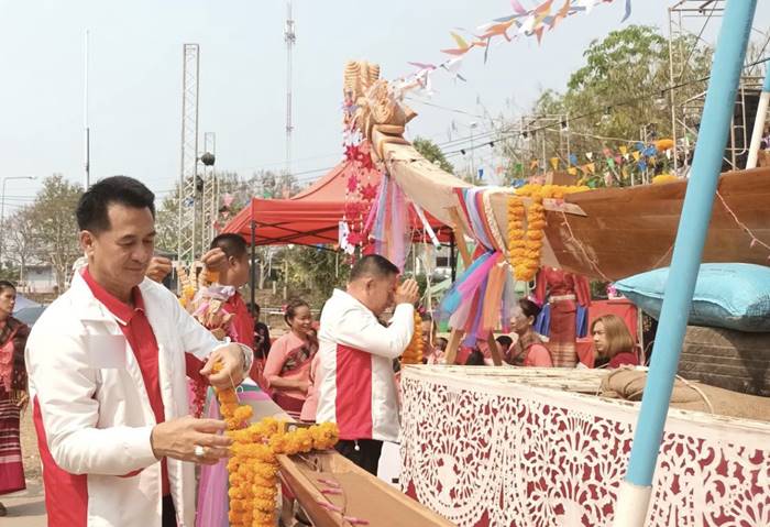 สันติสุข จัดพิธีบวงสรวงเรือ เจ้าแม่พยอมสาวเมืองโพง