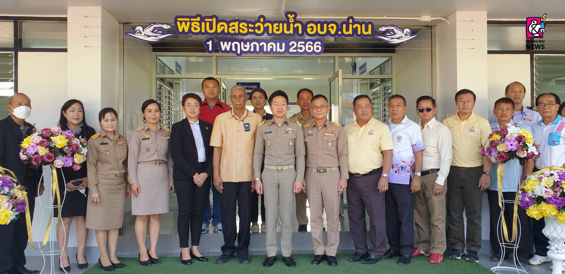เมื่อวันที่ 1 พฤษภาคม 2566 เวลา 09.00 น. ณ บริเวณสนามกีฬากลางองค์การบริหารส่วนจังหวัดน่าน นายนพรัตน์ ถาวงศ์ นายกองค์การบริหารส่วนจังหวัดน่าน เป็นประธานในพิธีเปิดการใช้สระว่ายน้ำขนาดมาตร ฐาน 50 เมตร ขององค์การบริหารส่วนจังหวัดฯ โดยมี นางทัชชา สามัคคีนิชย์ รองปลัดองค์การบริหารส่วนจังหวัดฯ กล่าวรายงานโครงการสระว่ายน้ำขนาดมาตรฐาน 50 เมตร ได้ริเริ่มดำเนินการก่อสร้าง ตั้งแต่ปีงบประมาณ พ.ศ. 2562 ด้วยงบประมาณขององค์การบริหารส่วนจังหวัดน่าน ทั้งสิ้น 28,800,000.- บาทและดำเนินการก่อสร้าง ให้แล้วเสร็จ เมื่อประมาณ เดือนมกราคม พ.ศ. 2566 ที่ผ่านมา ด้วยเหตุปัจจัยหลายอย่างๆ อาทิเช่น สถานการณ์ไข้หวัดโคโรนาหรือโควิด-19 ด้วยภาวะเศรษฐกิจตกต่ำ ที่ผ่านมา จึงทำให้การก่อสร้างล่าช้าออกไป อย่างไรก็ตาม ทันทีที่ นายนพรัตน์ ถาวงศ์ ได้เข้ามาบริหารงาน ได้เร่งรัดให้การดำเนินการก่อสร้างจนแล้วเสร็จลุล่วงไปด้วยดี อย่างสมบูรณ์ อย่างประณีต อย่างสวยงาม และเป็นไปตามแบบแปลนที่กำหนด