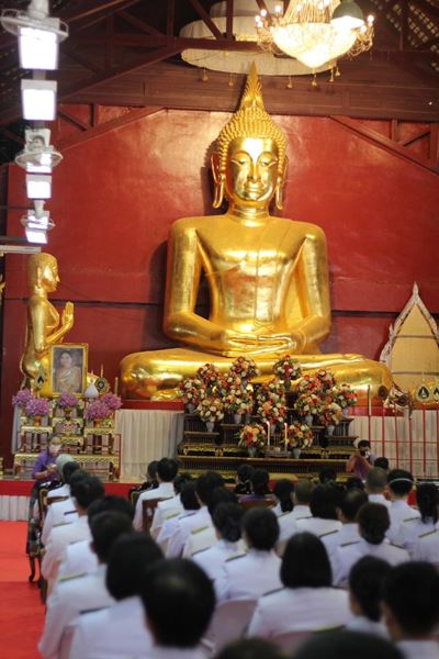 โดยมีพระราชศาสนาภิบาล เจ้าคณะจังหวัดน่าน เป็นประธานฝ่ายสงฆ์ นำพระภิกษุสงฆ์ เจริญพระพุทธมนต์ นำเจริญสมาธิถวายเป็นพระราชกุศล จากนั้น นำพระภิกษุสงฆ์ สามเณร จำนวน 45 รูป ออกรับบิณฑบาตจากพุทธศาสนิกชนชาวน่าน ที่พร้อมใจกันร่วมทำบุญตักบาตร เพื่อถวายเป็นพระราชกุศลและน้อมสำนึกในพระมหากรุณาธิคุณของพระองค์ท่าน ที่ได้ทรงปฏิบัติพระราชกรณียกิจนานัปการเพื่อประโยชน์สุขแห่งอาณาราษฎร