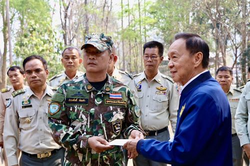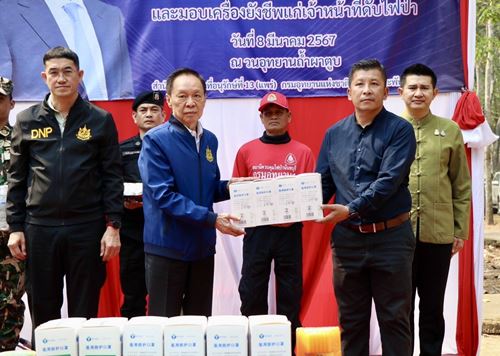 พล.ต.อ.พัชรวาท ได้กล่าวเพิ่มเติมว่า จากสถานการณ์ไฟป่าหมอกควันในปัจจุบัน ที่ได้เริ่มทวีความรุนแรงเพิ่มขึ้น ไม่ว่าจะเป็นจุด hotspot หรือค่าฝุ่นละออง PM2.5 ในอากาศ ที่มีปริมาณค่อนข้างสูงจึงมีความเป็นห่วงในการปฏิบัติภารกิจควบคุมไฟป่าและหมอกควันในสถานการณ์ปัจจุบันเป็นอย่างยิ่ง ซึ่งมีความยากลำบาก เนื่องจากอุณหภูมิความร้อนที่สูงและพื้นที่ลาดชัน ห่างไกลเส้นทางคมนาคม จึงขอให้ทุกท่านเตรียมร่างกายให้แข็งแรง และพร้อมในการปฏิบัติงานในทุกสถานการณ์ในโอกาสนี้ผมขอมอบเครื่องยังชีพเพื่อการปฏิบัติงานในป่า และอุปกรณ์ดับไฟป่าให้กับทุกท่าน เพื่อใช้ในการเพิ่มประสิทธิภาพการปฏิบัติงาน และขอเป็นกำลังใจให้พวกเราทุก ๆ คนได้ทำงานตามภารกิจ หน้าที่ที่สำคัญนี้อย่างปลอดภัย สำเร็จตามเป้าหมายทุกประการ