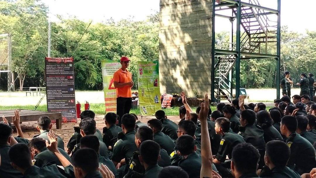 โดยมีการบรรยายและฝึกปฏิบัติในหัวข้อวิชาสาเหตุและชนิดของสาธารณภัย