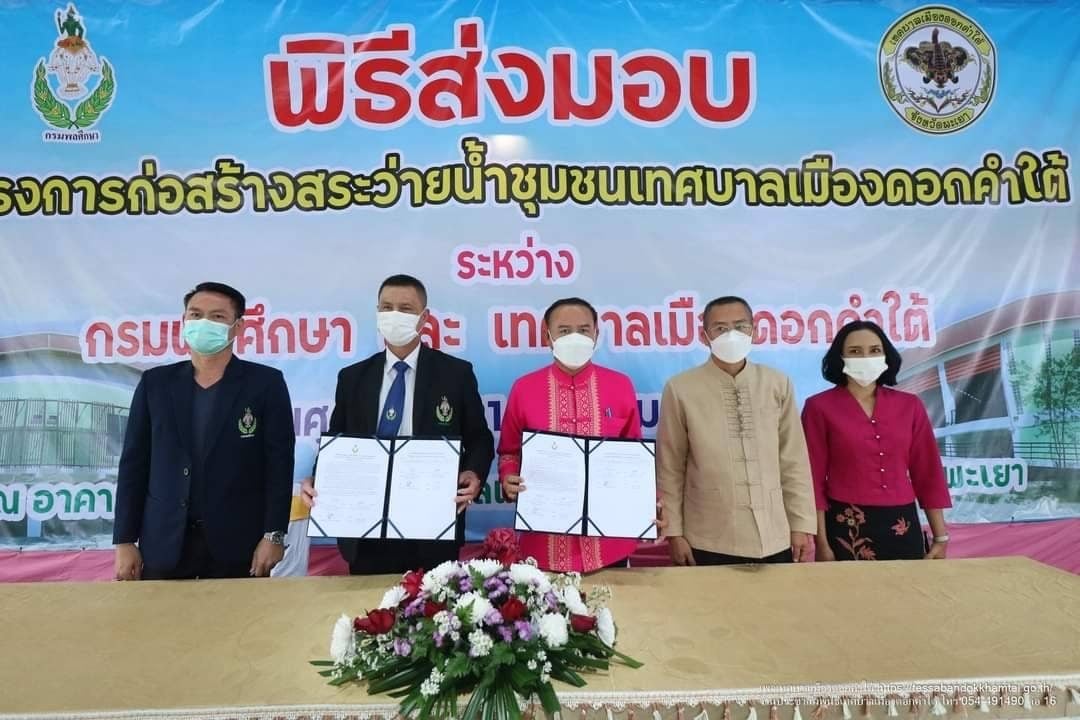 จังหวัดพะเยา ซึ่งเป็นสระว่ายน้ำที่กรมพลศึกษา ได้จัดตั้งงบประมาณปี พ.ศ. 2564 รายการงบลุงทุน ค่าที่ดินและสิ่งก่อสร้างอื่นๆ โครงการสระว่ายน้ำชุมชน ตำบลบุญเกิดฯ จำนวน 1 แห่ง โดยมี นายเกรียงไกร สะเภาคำ นายกเทศมนตรีเมืองดอกคำใต้ เป็นผู้รับมอบ มีคณะผู้บริหารและเจ้าหน้าที่ เข้าร่วมพิธีส่งมอบ-รับมอบ ในครั้งนี้ด้วย ณ บริเวณสระว่ายน้ำชุมชนเทศบาลเมืองดอกคำใต้