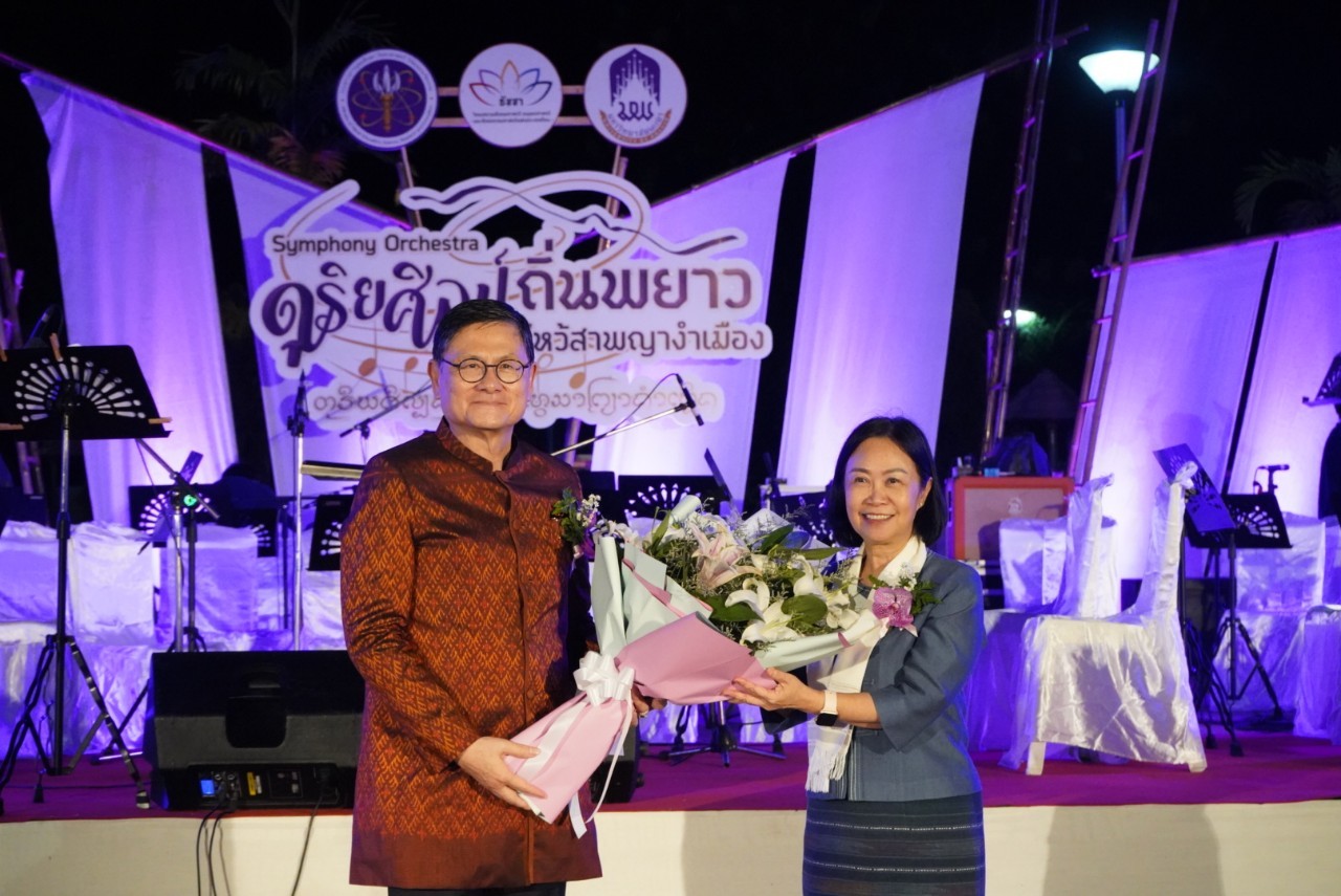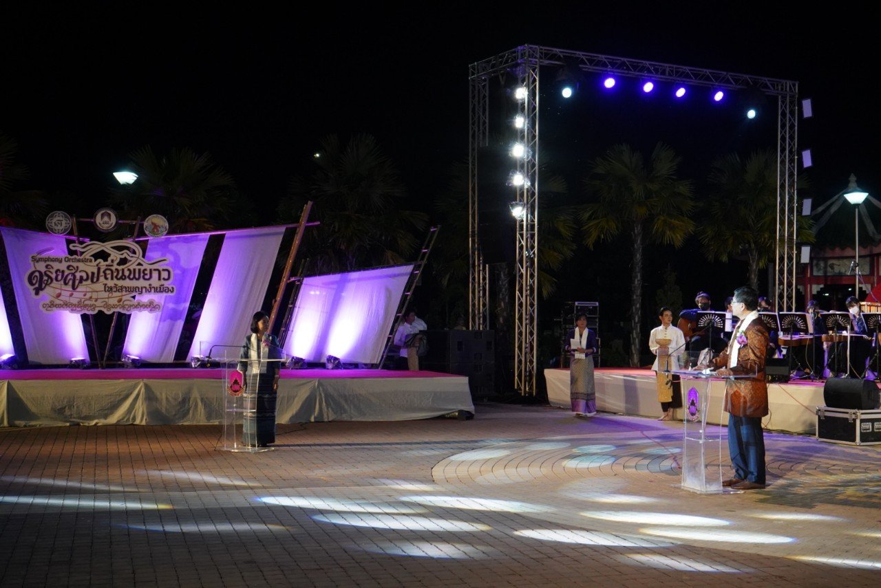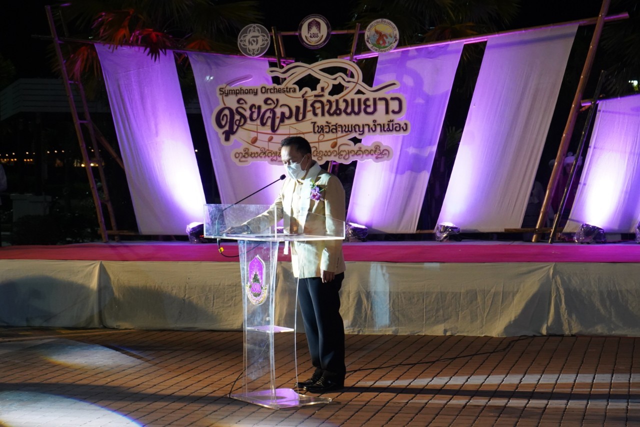อธิการบดีฯ กล่าวทิ้งท้ายว่า จังหวัดพะเยา มีประวัติศาสตร์ตั้งแต่สมัยก่อนประวัติศาสตร์จนมาถึงปัจจุบัน อายุกว่า 900 ปี มีผู้คนจากชาติพันธุ์หลากหลายที่เข้ามาตั้งถิ่นฐาน ด้วยความอุดมสมบูรณ์ของทรัพยากรทางธรรมชาติ ภูเขา ป่าไม้ แหล่งน้ำ และที่ราบ เหมาะแก่การทำเกษตรกรรม จึงส่งผลให้จังหวัดพะเยามีทุนทางวัฒนธรรมที่มีความหลากหลาย อาทิ โบราณวัตถุหินทราย ศิลปะล้านนา ความเชื่อ พิธีกรรม ประเพณีท้องถิ่น ดนตรีและการแสดงของกลุ่มชาติพันธุ์ ซึ่งมีความเป็นอัตลักษณ์ที่แสดงถึงบริบททางสังคมและวัฒนธรรมในแบบของตนเอง อีกทั้งมีธรรมชาติที่สวยงาม คือ กว๊านพะเยา ที่เป็นบึงน้ำจืดขนาดใหญ่ มีดอยหนอกทอดตัวยาวเป็นฉากหลัง นับว่าเป็นทัศนียภาพที่งดงาม ดังบทเพลงกว๊านพะเยา ที่เราคุ้นหู การแสดงดนตรี Symphony Orchestra ดุริยศิลป์ถิ่นพยาว : ไหว้สาพญางำเมือง ในวันนี้ เป็นการจัดกิจกรรมเพื่ออนุรักษ์มรดกทางวัฒนธรรม โดยใช้เพลงเก่าของชุมชนในพื้นที่ต่างๆ นำมาเรียบเรียงใหม่ พร้อมบรรเลงผ่านวงดนตรีซิมโฟนีออร์เคสตร้า มีบทเพลงที่ไพเราะในบรรยากาศที่สวยงาม รับลมเย็นจากกว๊านพะเยา เป็นการรังสรรค์ท่วงทำนองคีตศิลป์กระตุ้นให้เกิดสิ่งใหม่บนรากฐานสิ่งเก่า ผ่านบทเพลงและท่วงทำนองอันเป็นเอกลักษณ์ ด้านผลงานศิลปะทางวัฒนธรรมกับเศรษฐกิจเชิงสร้างสรรค์ เพื่อส่งเสริมการอนุรักษ์และต่อยอดต่อไป