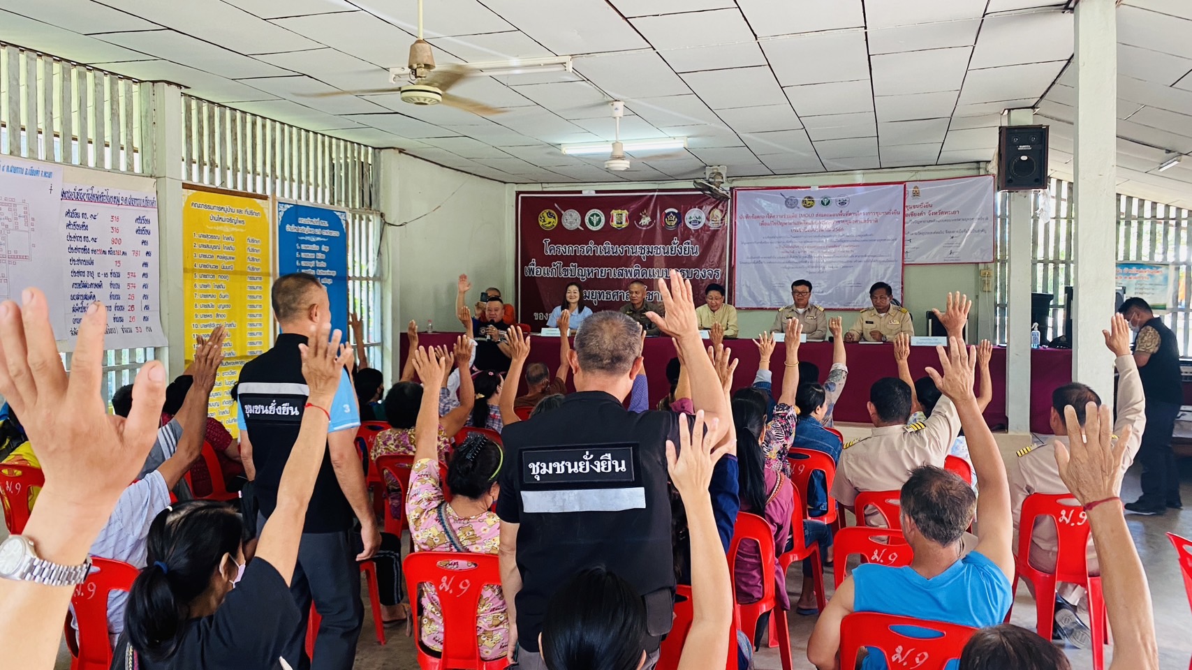 นายธวัช กล่าวว่า ในพื้นที่ของหมู่บ้านแห่งนี้พบว่าส่วนหนึ่งในเมื่อก่อนมีการแพร่ระบาดของปัญหายาเสพติดอยู่บ่อยครั้ง แต่ด้วยหลังจากที่ทางจังหวัดได้มีโครงการอบรมและบำบัดผู้ติดยาเสพติดซึ่งเป็นเวลา 15 วันก็ทำให้ปัญหาดังกล่าวเริ่มที่จะทุเลาลงไปบ้าง ทั้งนี้ชาวบ้านส่วนใหญ่ต่างให้ความร่วมมือเป็นอย่างดีโดยเฉพาะผู้นำชุมชนที่สอดส่องอยู่ทุกครั้งจนหลายเหตุการณ์เริ่มดีขึ้นเป็นลำดับ และในวันนี้ทางหมู่บ้านก็ได้มีการจัดตั้งผ้าป่าเพื่อระดมทุนจัดซื้อกล้องวงจรปิดเพื่อติดตั้งตามจุดต่าง ๆ ที่อาจะเป็นแหล่งมั่วสุมของผู้กระทำผิดด้านยาเสพติดรวมทั้งในเรื่องอื่น ๆ ที่จะตามมาอีกด้วย ซึ่งตนเองได้บอกกล่าวกับทางเจ้าหน้าที่ตำรวจด้วยว่าหลังจากนี้ทุกฝ่ายจะร่วมมือกันอย่างชัดเจนหากเจอต้นตอหรือผู้ที่เกี่ยวข้องกับยาเสพติดจะทำการเข้าจับกุมทันทีซึ่งถือว่าเป็นภัยที่อาจก่อให้เกิดความไม่สงบสุขภายในหมู่บ้านด้วยเช่นกัน