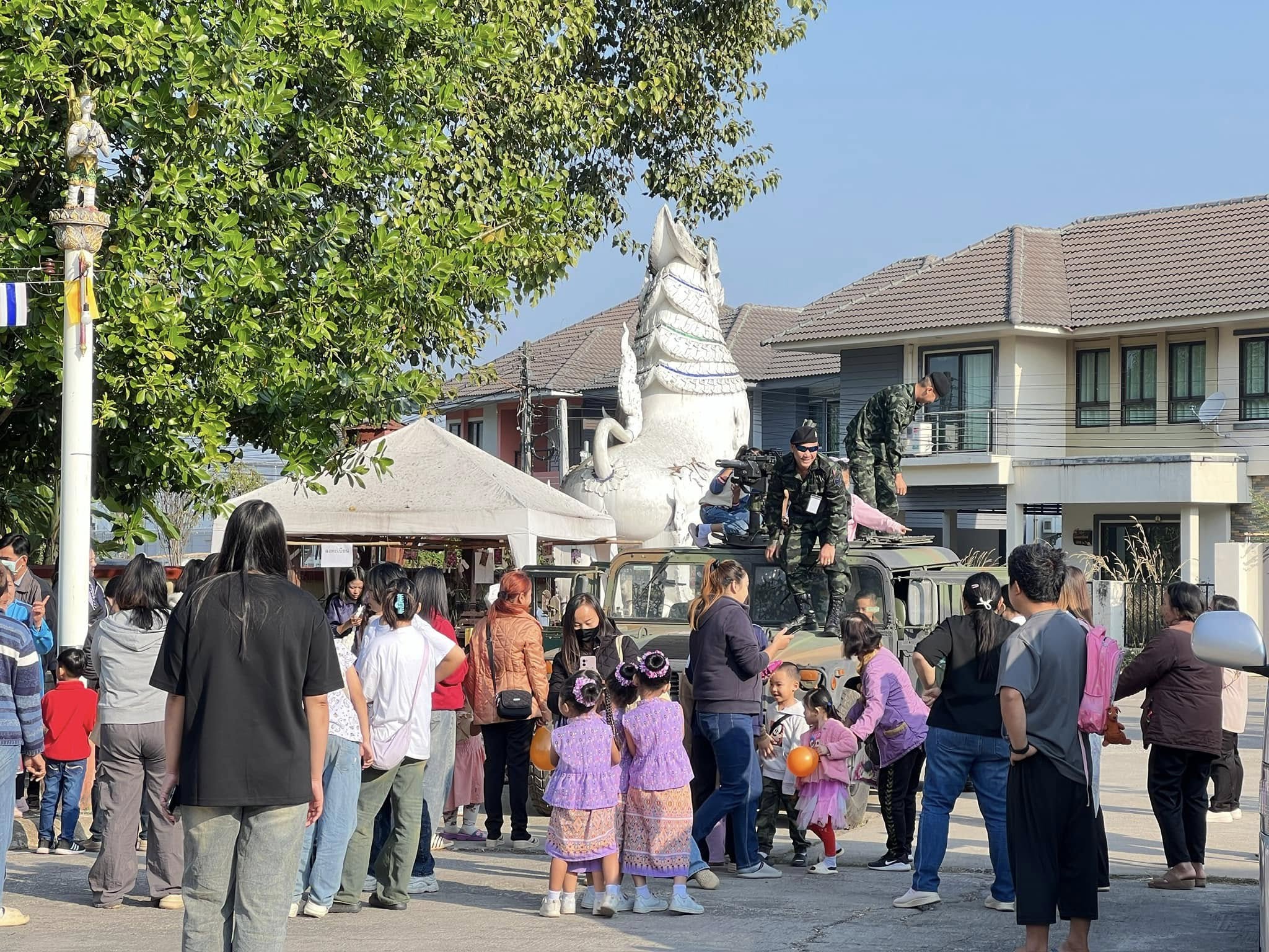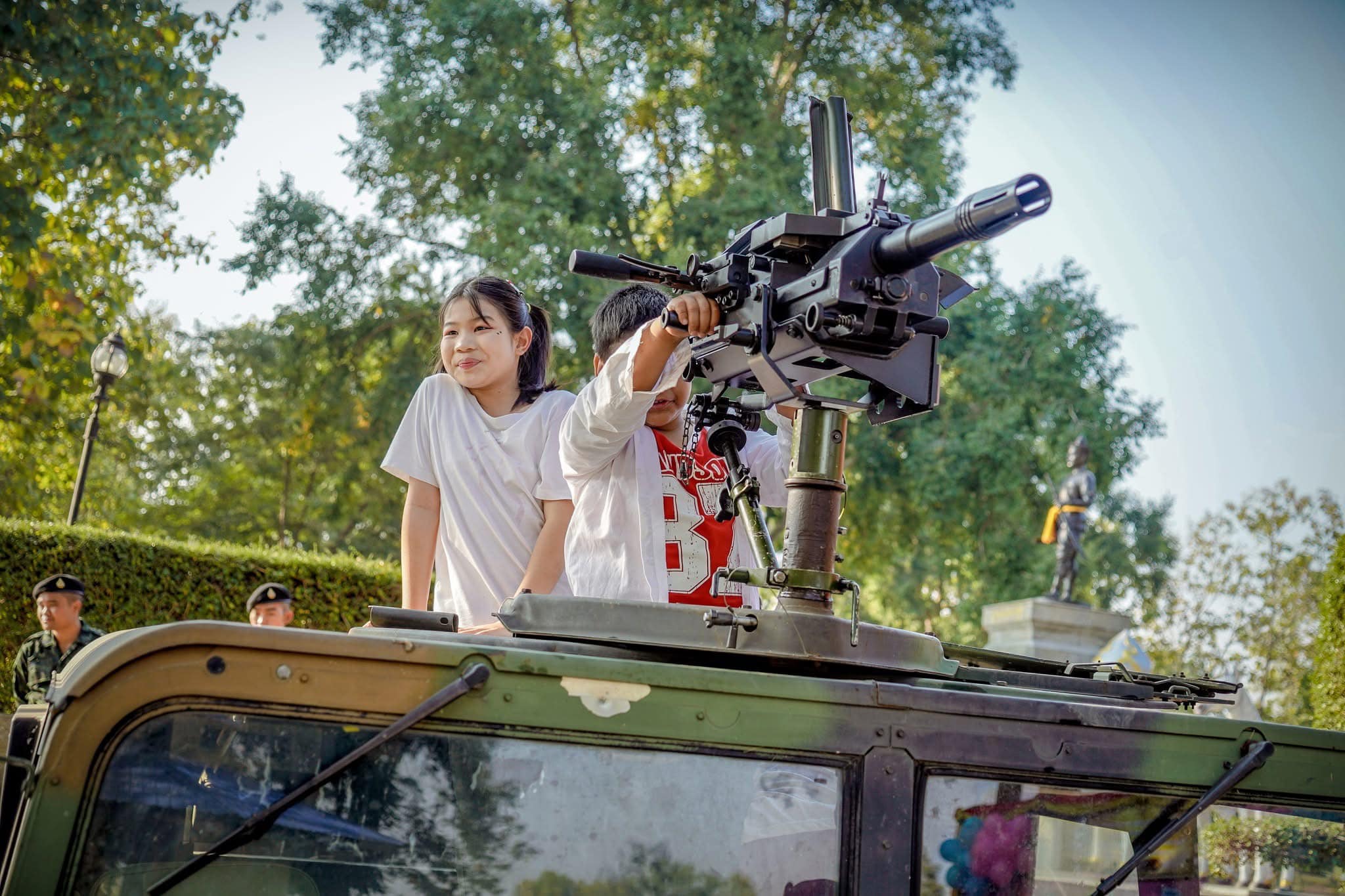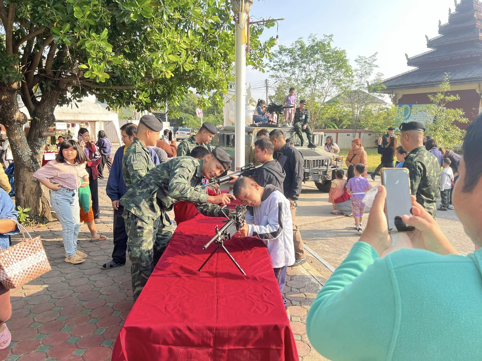 วันที่ 11 ม.ค. 68 ผู้สื่อข่าวรายงานว่า ในวันนี้ซึ่งเป็นวันเด็กแห่งชาติประจำปี 2568 ในหลายพื้นที่ทั้งภาครัฐและเอกชนต่างจัดกิจกรรมวันเด็กกันอย่างสนุกสนาน ไม่เว้นแต่ใน จ.พะเยา ทั้งนี้เห็นได้ว่าทั้งหน่วยงาน อปท. เทศบาล วัด หรือแม้กระทั่งเจ้าหน้าที่ทหารก็ได้นำอาวุธยุทโธปกรณ์ออกมาโชว์ให้เด็ก ๆ ได้ตื่นตาตื่นใจกันไปเป็นแถว นอกจากนี้ก็ยังมีเจ้าของร้านขายยางรถยนต์และซ่อมช่วงล่างก็ได้นำขนมพร้อมทั้งของเล่นออกมาแจกเด็ก ๆ ที่มารอรับหน้าร้านด้วยเช่นกัน