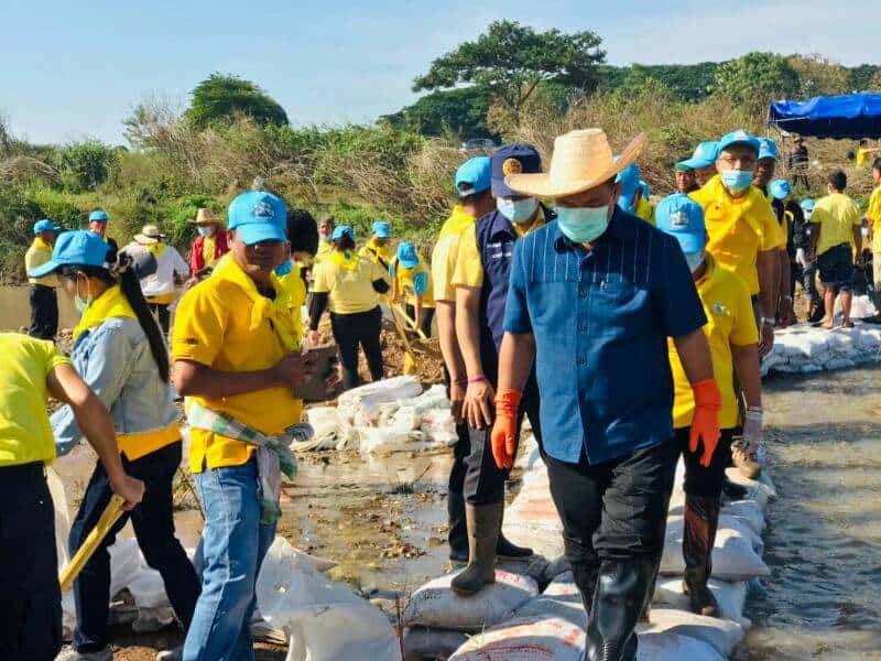 เมื่อวันที่ 2 ธันวาคม 2563 เวลา 09.00 น. นายสมหวัง พ่วงบางโพ ผู้ว่าราชการจังหวัดแพร่ ให้เกียรติร่วมกับ นายกิติพัฒน์ กะวัง นายอำเภอสอง จ.แพร่ นายธีระ แก้วมา ปลัดอำเภอหัวหน้ากลุ่มงานบริหารงานปกครอง หัวหน้าส่วนราชการ นายกเทศมนตรีเทศบาลตำบลห้วยหม้าย นายกองค์การบริหารส่วนตำบลทุ่งน้าว เจ้าหน้าที่ตำรวจ สภ.สอง กำนันตำบลทุ่งน้าว ผู้ใหญ่บ้านในตำบลห้วยหม้าย/ตำบลทุ่งน้าว เจ้าหน้าที่ อสม.ตำบลทุ่งน้าว จิตอาสาพระราชทาน และกลุ่มผู้ใช้น้ำ ร่วมกันนำกระสอบทรายทำฝายชะลอน้ำกั้นลำน้ำยม(บริเวณสะพานมิตรภาพทุ่งน้าว – ร่องถ่าน) อำเภอสอง จังหวัดแพร่