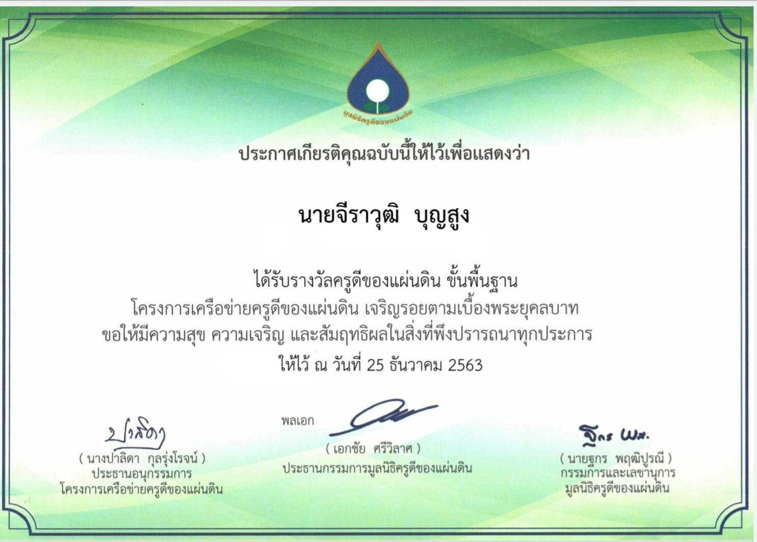 ได้รับโล่ประกาศเกียรติคุณผู้บริหารโรงเรียนมัธยมศึกษาขนาดเล็ก ประจำปี 2563 จากมูลนิธิผู้บริหารโรงเรียนมัธยมศึกษาแห่งประเทศไทย(ม.บ.ม.ท.) นาบจีราวุฒิ บุญสูง น.ส.พิวรรณ ปัญโญ ครูร.ร.บ้านกาศประชานุเคราะห์ได้รับรางวัลครูดีของแผ่นดินขั้นพื้นฐาน ปี 2563 เป็นต้น