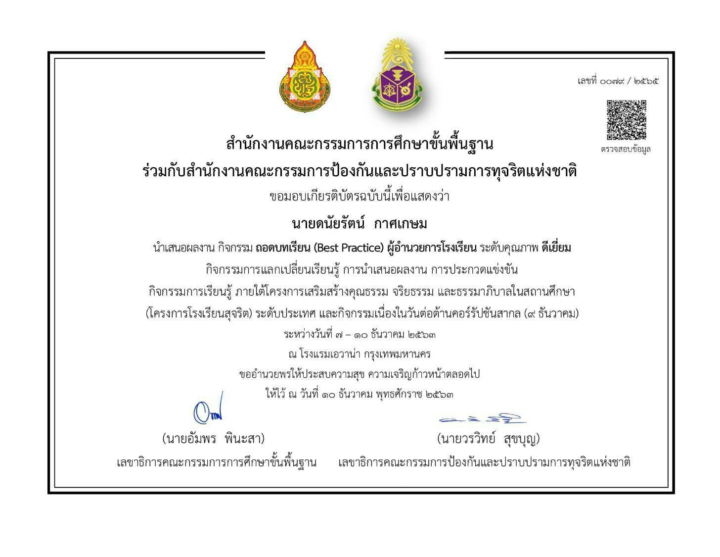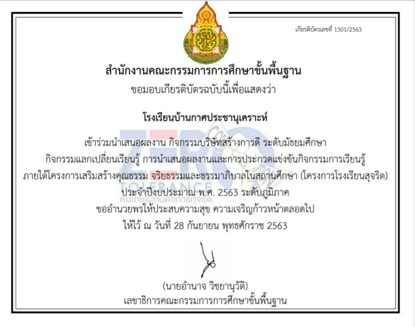 ดร.ดนัยรัตน์ กาศเกษม ผอ.รร.บ้านกาศประชานุเคราะห์ ต.บ้านกาศ อ.สูงเม่น จ.แพร่ สังกัดสำนักงานเขตพื้นที่การศึกษามัธยมศึกษาเขต 37 (สพม 37) เผยว่า รร.บ้านกาศประชานุเคราะห์ซึ่งเป็นโรงเรียนมัธยมศึกษาขนาดเล็กได้มีความมุ่งมั่นตั้งใจในการพัฒนาคุณภาพการศึกษาในทุกๆด้านควบคู่ไปกับการสร้างคุณธรรมจริยธรรม ร่วมกับคณะกรรมการสถานศึกษา ภาคีเครือข่ายต่างๆ คณะครูและบุคลากรของโรงเรียน มุ่งมั่นพัฒนาโรงเรียนขนาดเล็กสู่มาตรฐานสากลตามแนวศาสตร์พระราชา ภายใต้ค่านิยมสุจริตตั้งแต่ปีการศึกษา 2560 เป็นต้นมา