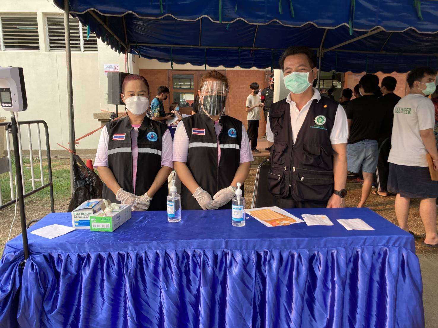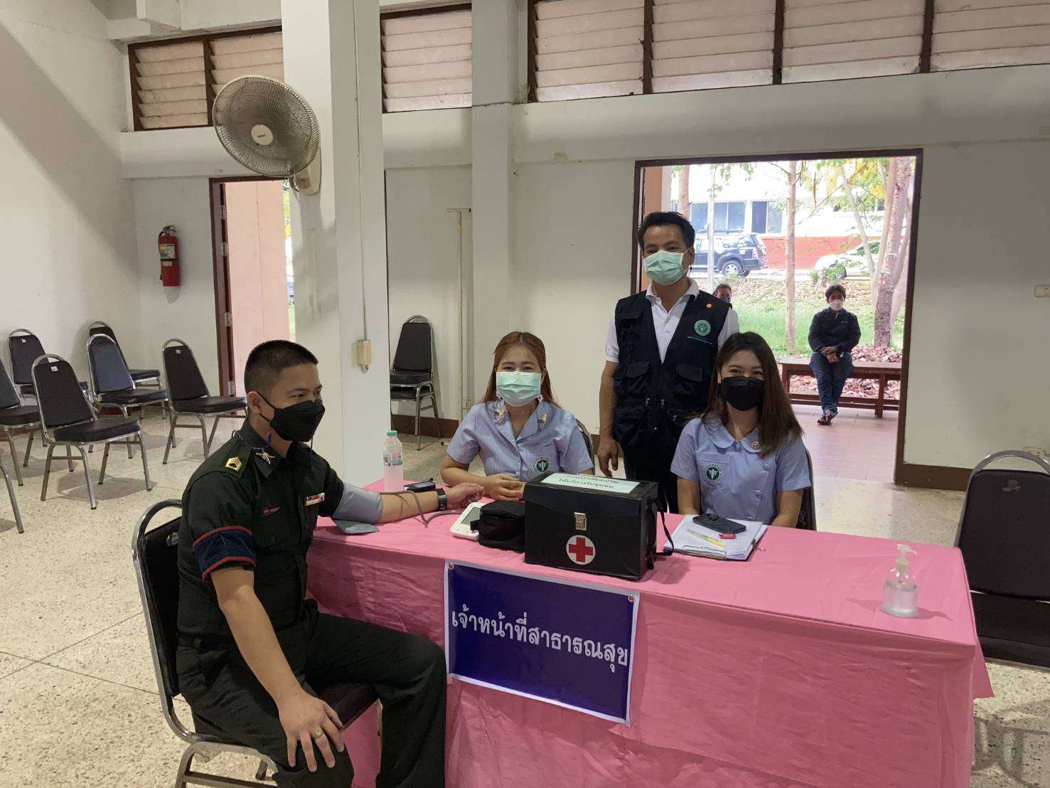 น.ส.ธนภรณ์ ใจอิ้ง พยาบาลวิชาชีพชำนาญการ รพ.สต.น้ำชำ น.ส.ชลธิชา เวทย์มน พยาบาลวิชาชีพ รพ.สต.บ้านผาสุก อสม. พื้นที่ รพ.สต.สูงเม่น ประจำจุดคัดกรองฯ จำนวน 2 คน