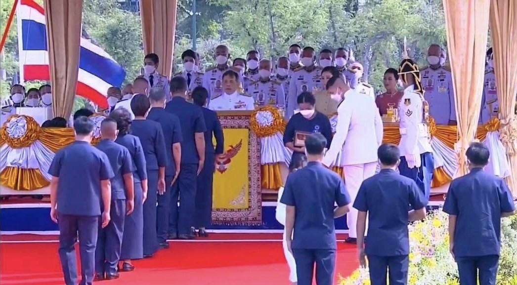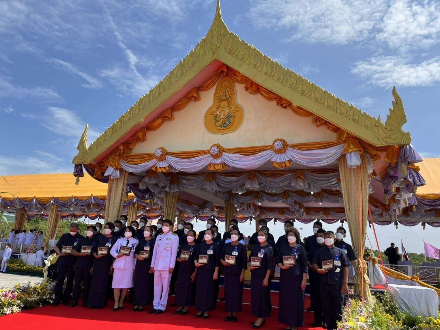 พระบาทสมเด็จพระเจ้าอยู่หัว และสมเด็จพระนางเจ้าฯ พระบรมราชินี เสด็จพระราชดำเนินโดยรถยนต์พระที่นั่ง ไปในการพระราชพิธีพืชมงคลจรดพระนังคัลแรกนาขวัญ พุทธศักราช 2565 ณ มณฑลพิธีท้องสนามหลวง เมื่อวันที่ 13 พฤษภาคม 2565 เวลา 08.38 น. นายประภาส สานอูป เกษตรจังหวัดเเพร่ มอบหมายให้นางสาวจิรสุดา ปัญญาไศย นักวิชาการส่งเสริมการเกษตรปฏิบัติการ สำนักงานเกษตรจังหวัดแพร่ เจ้าหน้าที่พี่เลี้ยง พร้อมด้วยนางบุญมี อ่อนน้อม ประธานกลุ่มเเม่บ้านเกษตรกรบ้านทุ่งโฮ้ง หมู่ 5 ตำบลทุ่งโฮ้ง อำเภอเมืองเเพร่ จังหวัดแพร่ ร่วมพระราชพิธีฯ และเข้ารับพระราชทานโล่รางวัลสถาบันเกษตรกรดีเด่นแห่งชาติ สาขากลุ่มแม่บ้านเกษตรกร ในงานพระราชพิธีพืชมงคลจรดพระนังคัลแรกนาขวัญ ประจำปีพุทธศักราช 2565 ณ มณฑลพิธีท้องสนามหลวง
