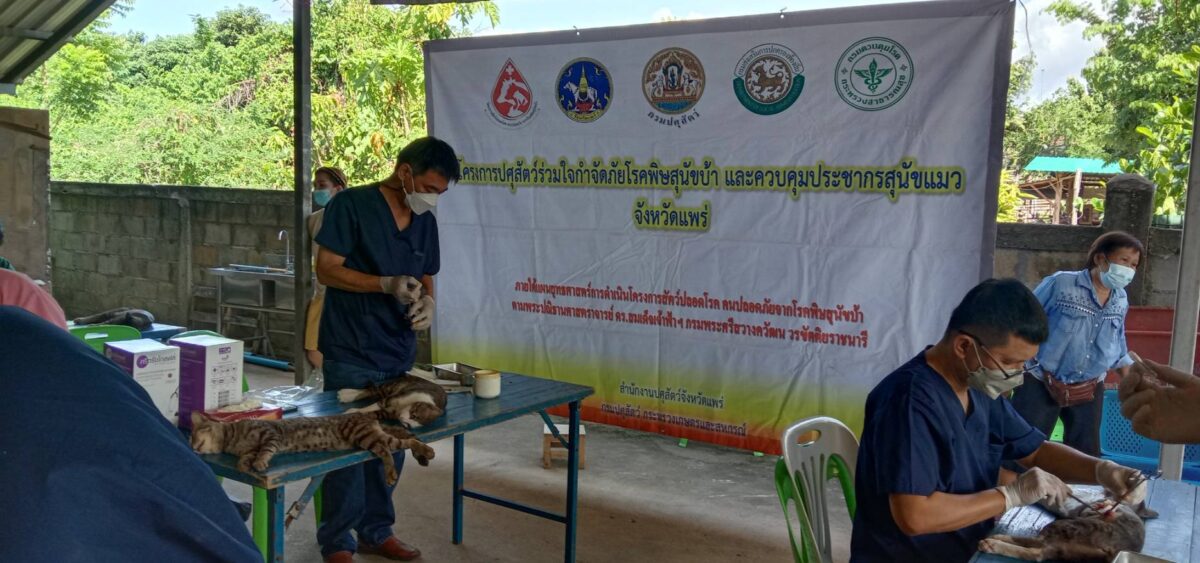 เมื่อวันที่ 28 มิถุนายน 2565 น.สพ.ดร.สมพร พรวิเศษศิริกุล ปศุสัตว์จังหวัดแพร่ มอบหมายให้ น.สพ.จิรัฎฐ์ ทะนันชัย นายสัตวแพทย์ชำนาญการ นายนิคม ดอกสลิด สัตวแพทย์ชำนาญงาน นายวรเทพ สุวรรณกาศ สัตวแพทย์ชำนาญงาน พร้อมด้วยเจ้าหน้าที่และพนักงานกลุ่มพัฒนาสุขภาพสัตว์ และสำนักงานปศุสัตว์อำเภอสอง ร้องกวาง สูงเม่น และหนองม่วงไข่ จังหวัดแพร่ บูรณาการร่วมกับเทศบาลตำบลแม่คำมี อำเภอเมืองแพร่ ปฏิบัติงานกิจกรรมควบคุมประชากรสุนัข แมว โดยการผ่าตัดทำหมันถาวร ตามโครงการปศุสัตว์ร่วมใจกำจัดภัยโรคพิษสุนัขบ้า ปี 2565 ภายใต้โครงการสัตว์ปลอดโรค คนปลอดภัยจากโรคพิษสุนัขบ้าตามพระปณิธาน ศาสตราจารย์ ดร.สมเด็จเจ้าฟ้าฯ กรมพระศรีสวางควัฒน วรขัตติยะราชนารี