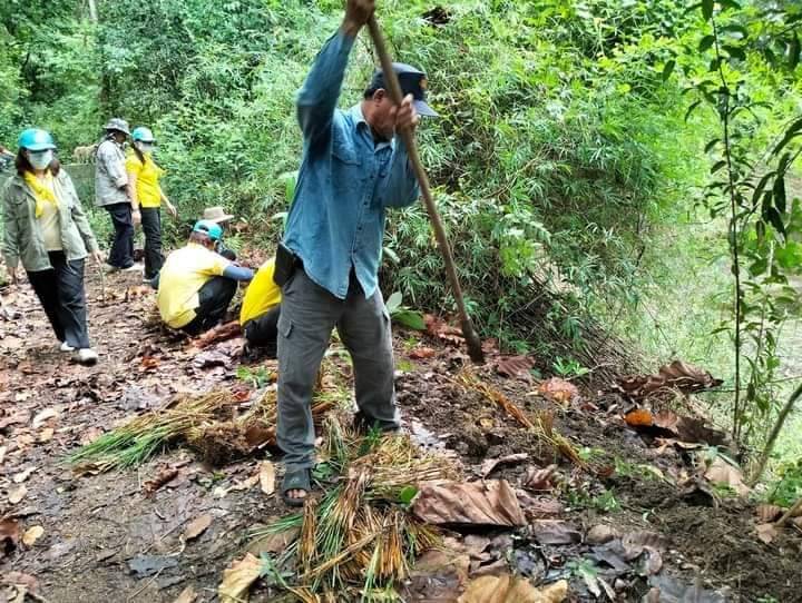 นางสาวลดาวัลย์ วัฒนาโกศัย นำปลัดเทศบาลตำบลร้องกวาง พนักงานเจ้าหน้าที่ ร่วมกับผู้นำหมู่บ้านและชาวบ้านบ้านใหม่จัดสรร ร่วมโครงการปลูกหญ้าแฝก ณ บริเวณอ่างเก็บน้ำบ้านใหม่จัดสรร หมู่ที่ 5 ตำบลร้องเข็ม ฯ เพื่อป้องกันการชะล้างพังทลายของดินและเป็นการอนุรักษ์ฟื้นฟูทรัพยากรธรรมชาติ พนร้อมทั้งได้ฝากให้ชาวบ้านได้ช่วยกันดูแลนรักษาหญ้าแผกให้เจริญเติบโตอุดมสมบูรณ์ต่อไป