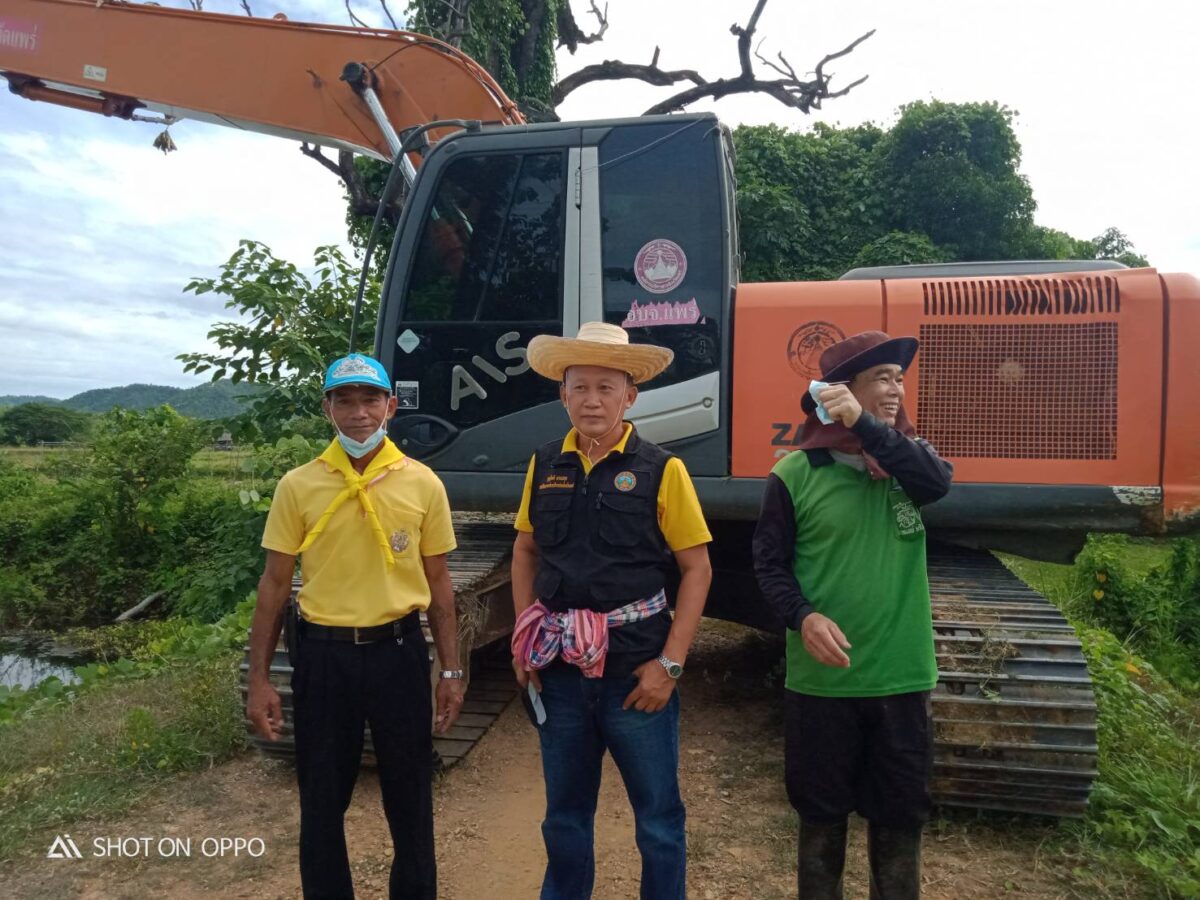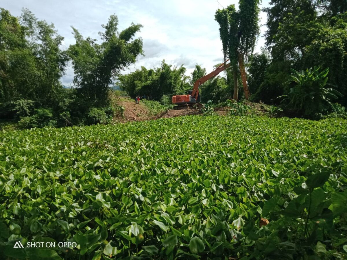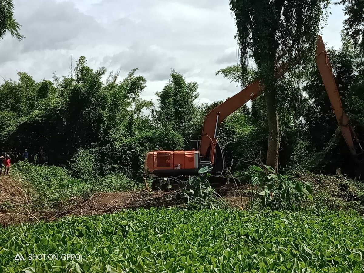 จิตอาสาจาก อบต.บ้านปิน และชาวบ้านกองฝายร่วมกันพัฒนาลอกรื้อวัชพืช