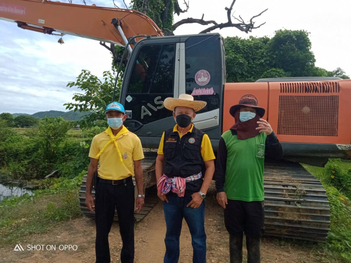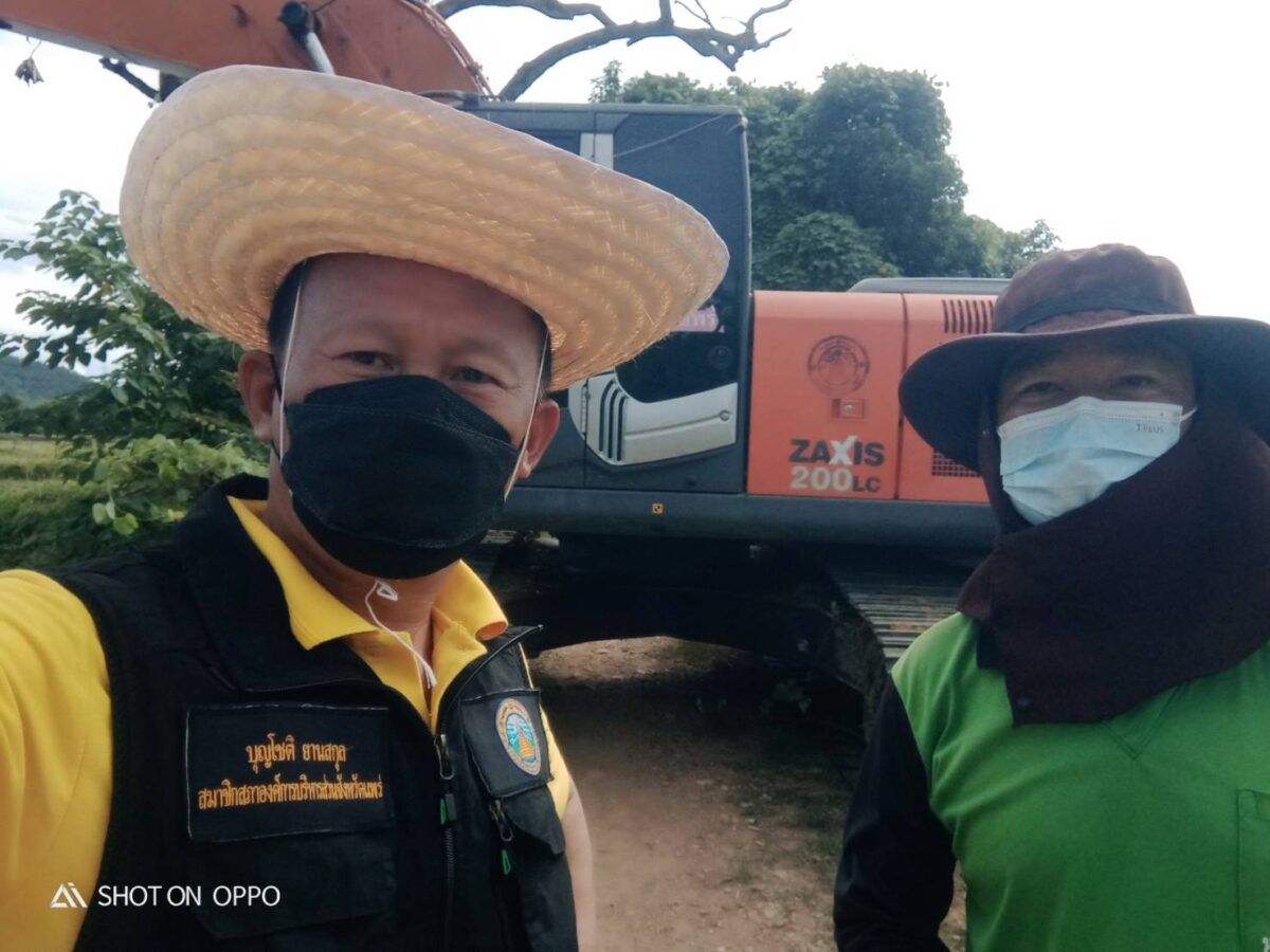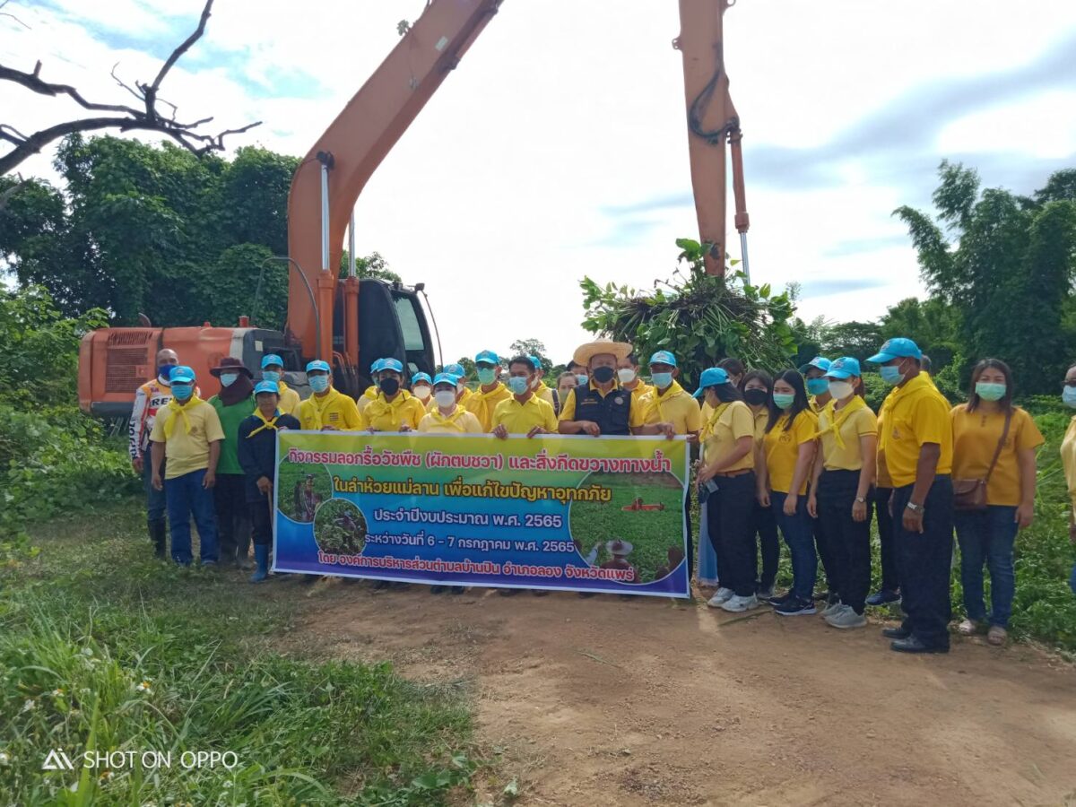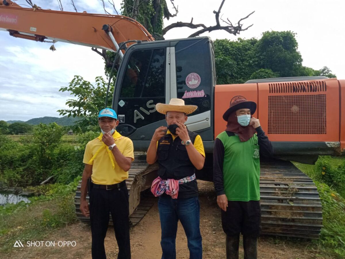จิตอาสาจาก อบต.บ้านปิน และชาวบ้านกองฝายร่วมกันพัฒนาลอกรื้อวัชพืช