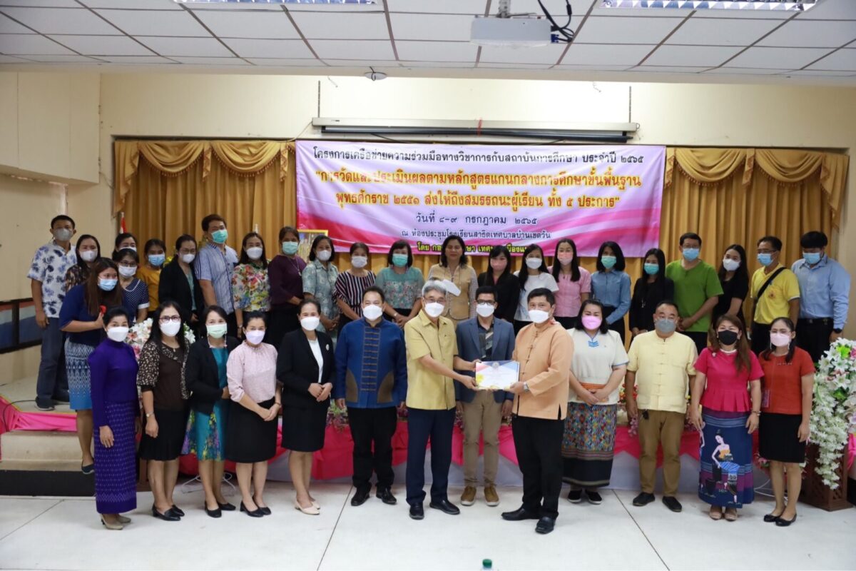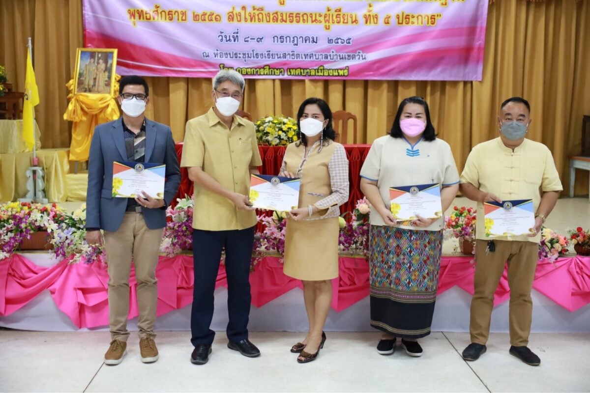 ระหว่างวันที่ 8-9 กรกฎาคม 2565 เวลา 08.00-17.30 น. กองการศึกษา เทศบาลเมืองแพร่ จัดโครงการเครือข่ายความร่วมมือทางวิชาการกับสถาบันการศึกษา “การวัดและประเมินผลตามหลักสูตรแกนกลางการศึกษาขั้นพื้นฐาน พุทธศักราช 2551 ส่งให้ถึงสมรรถนะผู้เรียน ทั้ง 5 ประการ” โดยมีนายโชคชัย พนมขวัญ นายกเทศมนตรีเมืองแพร่ เป็นประธานเปิดโครงการฯ ณ ห้องประชุมโรงเรียนสาธิตเทศบาลบ้านเชตวัน ซึ่งเป็นโครงการฝึกอบรมสำหรับคณะผู้บริหารสถานศึกษาและคณะครูโรงเรียนในสังกัดเทศบาลเมืองแพร่ เพื่อใช้เป็นแนวทางในการพัฒนาหลักสูตรของสถานศึกษา รวมทั้งการจัดการเรียนรู้ฐานสมรรถนะในชั้นเรียน ส่งเสริมการเรียนรู้ฐานสมรรถนะ 5 ประการ คือ 1) ความสามารถในการสื่อสาร 2) ความสามารถในการคิด 3) ความสามารถในการแก้ปัญหา 4) ความสามารถในการใช้ทักษะชีวิต 5) ความสามารถในการใช้เทคโนโลยี ของผู้เรียนให้สูงขึ้น วิทยากรบรรยายให้ความรู้โดยดร.ชนาธิป ทุ้ยแป จากสำนักงานคณะกรรมการการศึกษาขั้นพื้นฐาน และดร.มุกดา เลขะวิพัฒน์ ศึกษานิเทศก์เชี่ยวชาญ โดยมีปลัดเทศบาลเมืองแพร่ รองปลัดเทศบาลเมืองแพร่ ผู้อำนวยการกองการศึกษา และหัวหน้าฝ่ายบริหารการศึกษา ร่วมลงพื้นที่เพื่อสร้างขวัญและกำลังใจแก่ผู้เข้าร่วมการฝึกอบรมดังกล่าวด้วย