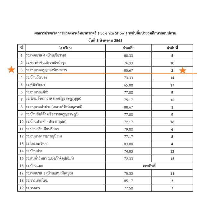 ดร.ปรีชาชาญ อินทรชิต ผอ.โรงเรียนอนุบาลจรูญลองรัตนาคาร อ.ลอง จ.แพร่ สังกัด สพป.แพร่ เขต 1 กล่าวว่า คณะครู นักเรีบน ผู้ปกครองนักเรียน โรงเรียนอนุบาลจรูญลองรัตนาคาร แสดงความยินดีกับ รางวัลรองชนะเลิศ อันดับ 1 Science Show ระดับประถมศึกษาตอนปลาย ทีมนักเรียนโรงเรียนอนุบาลจรูญลองรัตนาคาร ได้รับรางวัลรองชนะเลิศ อันดับ 1 Science Show ระดับประถมศึกษาตอนปลาย งานมหกรรมวิทยาศาสตร์ “SCIENCE VARIETY รวมพลคนสร้างสรรค์ ปี 2565”