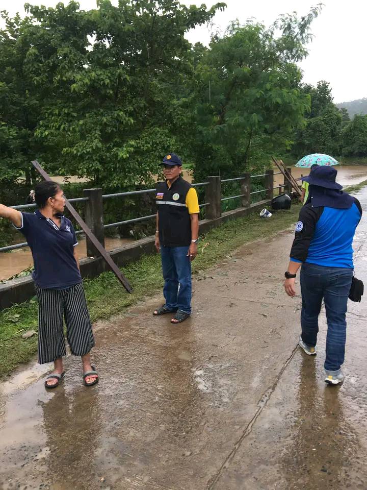 ต่อมานายแสงสว่าง เสือขำ สมาชิกสภาองค์การบริหารส่วนจังหวัดแพร่เขต 1 อ.ลองลงพื้นที่ร่วมกับนางสาวกรรณิการ์ ผาภูมิ นายกเทศมนตรีตำบลแม่ลานนา ปลัดอำเภอลองกำนัน ต.ห้วยอัอ สมาชิกสภาเทศบาลแม่ลานนา ตรวจดูความเสียหาย เพื่อหาแนวทางช่วยเหลือ