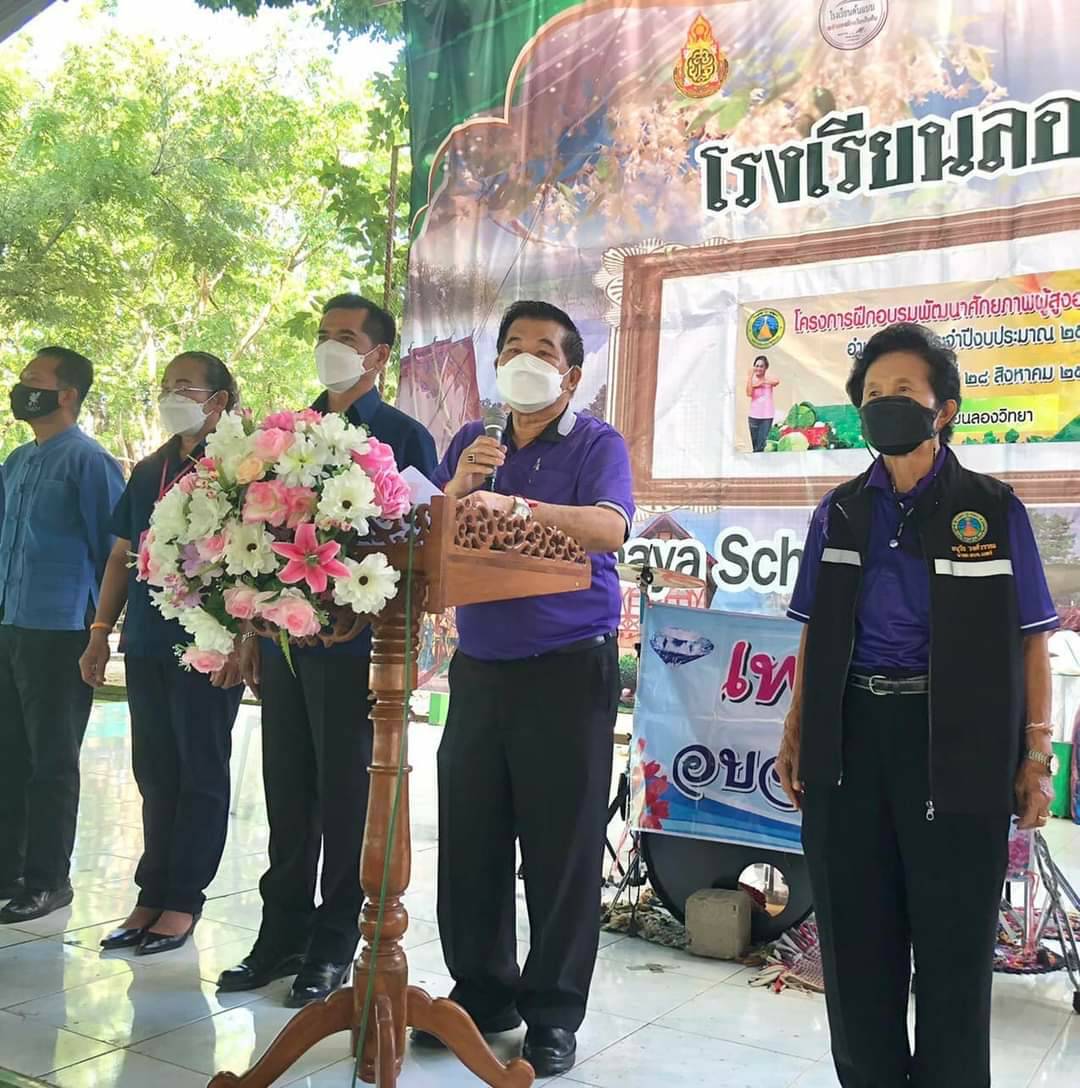 จ่าเอกพรต ทับทิมทอง ผู้อำนวยการกองยุทธศาสตร์และงบประมาณ ,นางอภิสรา บุตสีทา ผู้อำนวยการกองสวัสดิการสังคม ,นายสุเมธ ผสมทอง นักบริหารงานสวัสดิการสังคม ,นายธนวัฒน์ สนธิ นักบริหารสวัสดิการสังคม และเจ้าหน้าที่กองสวัสดิการสังคม ซึ่งกองสวัสดิการสังคมได้ดำเนินโครงการพัฒนาศักยภาพผู้สูงอายุ อำเภอลองรุ่นที่ 8 จำนวน 280 คน
