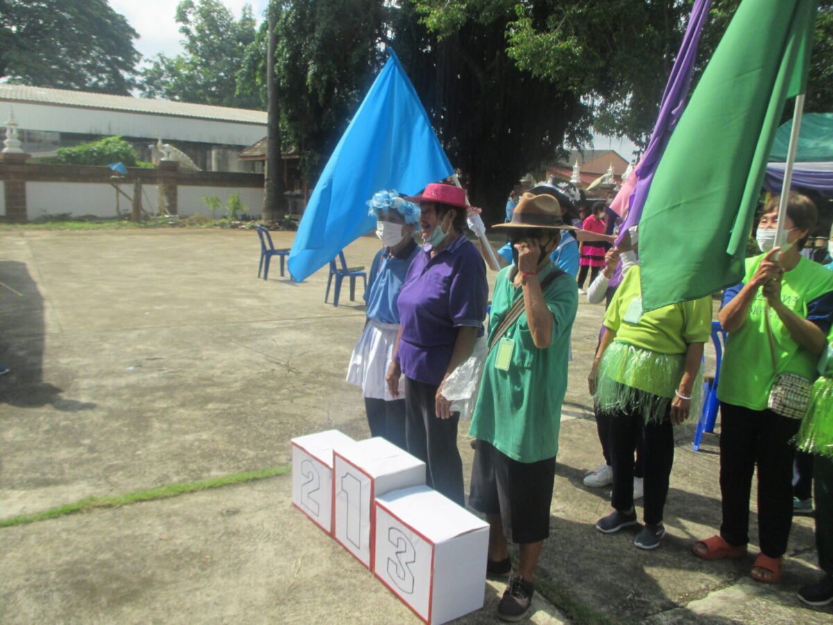 หลังจากพิธ๊เปิดการแข่งขันกีฬา ในภาคเช้าส่วนใหญ่เป็นเกมส์ ภาคบ่ายหมากฮอส หมากรุก เปตอง และสนุกสนานกับเสียงเพลง การแข่งรายการแรก เป็นการแข่งออกศึก เป็นที่สนุกสนาน เนื่องจากนักกีฬาที่เข้าแข่งขันสับสนการเล่น กรรมการต้องจัดแข่งถึง 2 รอบ รายการที่ 2 การแข่งขันตีเกราะ นักกีฬา มีด้วยกัน 4 ทีมๆละ 5 คน ประกอบไปด้วย สีเขียว เหลือง ชมพู ม่วง นักกีฬาหลงๆ ลืมการเล่น เป็นบรรยากาศที่สนุกสนานทั้งวัน