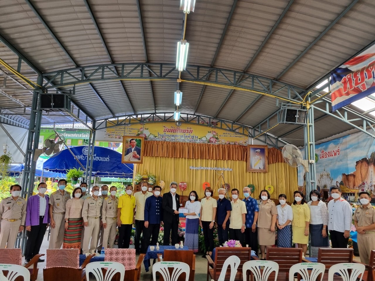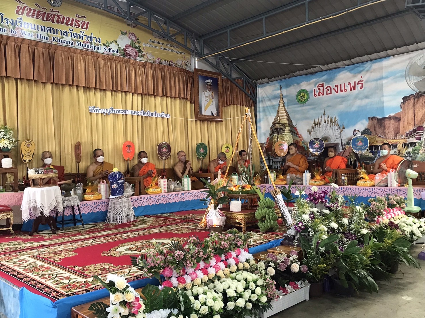 วันที่ 5 กันยายน 2565 เวลา 09.30 น. นายโชคชัย พนมขวัญ นายกเทศมนตรีเมืองแพร่ ประธานในพิธีทำบุญสืบชะตาและพิธีป้ายโรงเรียนเทศบาลวัดหัวข่วง พร้อมด้วย ผู้บริหารเทศบาล สมาชิกสภาเทศบาล คณะกรรมการสถานศึกษา ชุมชนหัวข่วง