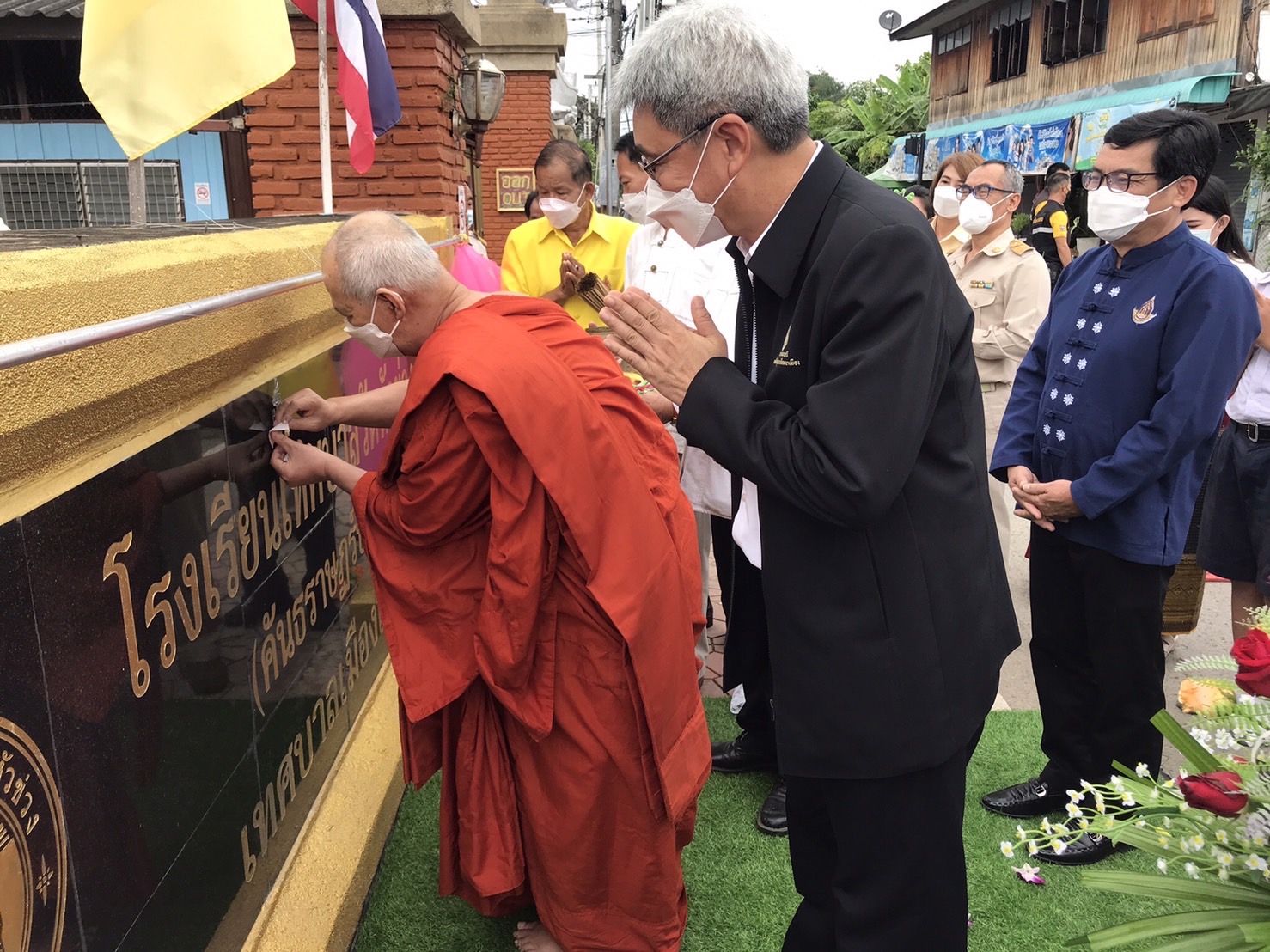 โดยมี นางทองมัน สิทธิกัน ผู้อำนวยการสถานศึกษา กล่าวรายงาน พร้อมด้วย นางลัลน์ทริมาล วงศ์บุรี รองผู้อำนวยการสถานศึกษา คณะครู บุคลากร นักเรียน ร่วมพิธีทำบุญเพื่ออุทิศส่วนบุญกุศลให้กับคณะผู้บริหาร คุณครู ผู้มีพระคุณ ได้ก่อตั้งโรงเรียนทำคุณประโยชน์ สร้างชื่อเสียงให้กับโรงเรียนเป็นที่รู้จักจนถึงปัจจุบัน เพื่อเป็นสิริมงคลแก่ ผู้บริหาร คณะครู บุคลากร นักเรียน และเพื่อโรงเรียนมีป้ายโรงเรียนเพื่อแสดงให้ผู้คนได้รู้จักมากยิ่งขึ้น