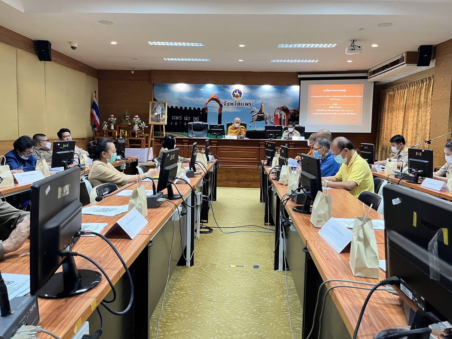 เมื่อวันที่ 12 กันยายน 2565 ณ ห้อง ประชุมจดหมายเหตุ ชั้น 2 ศาลากลางจังหวัดแพร่ นายสมหวัง พ่วงบางโพ ผู้ว่าราชการจังหวัดแพร่ มอบหมายให้ นายวาทิต ปัญญาคม ปลัดจังหวัดแพร่ เป็นประธานการประชุมเตรียมความพร้อมการจัดงานประเพณีกิ๋นสลากหลวงจังหวัดแพร่ ประจำปี 2565 โดยมีพระราชเขมากร เจ้าอาวาสวัดพระบาทมิ่ง เมืองวรวิหาร เจ้าคณะจังหวัดแพร่ เป็น ประธานฝ่ายสงฆ์ พร้อมด้วย สิบเอกหญิงกรวรรณ สุ่มมาตย์ วัฒนธรรมจังหวัดแพร่ หน่วยงานราชการ เอกชน ที่เกี่ยวข้องเข้าร่วมประชุม