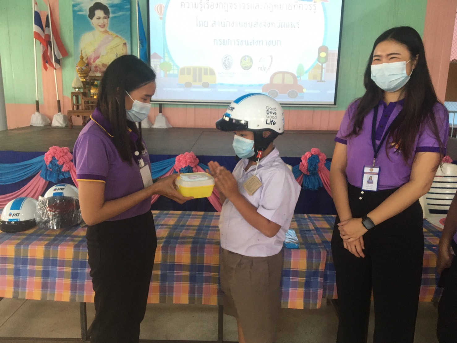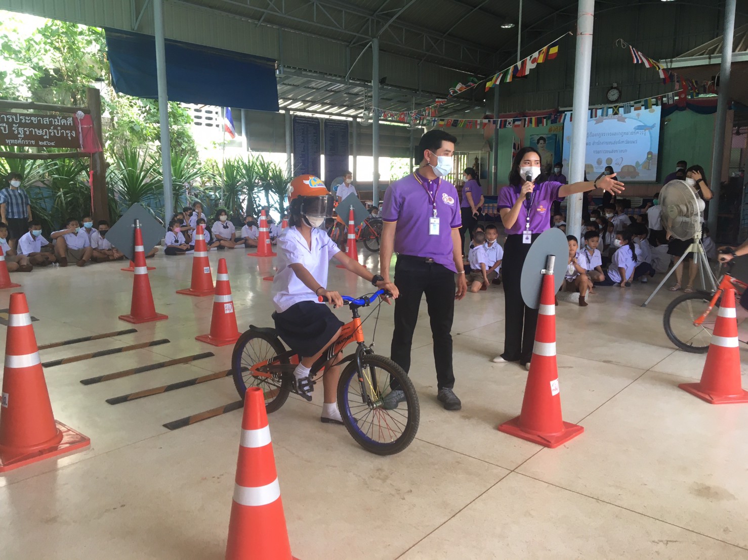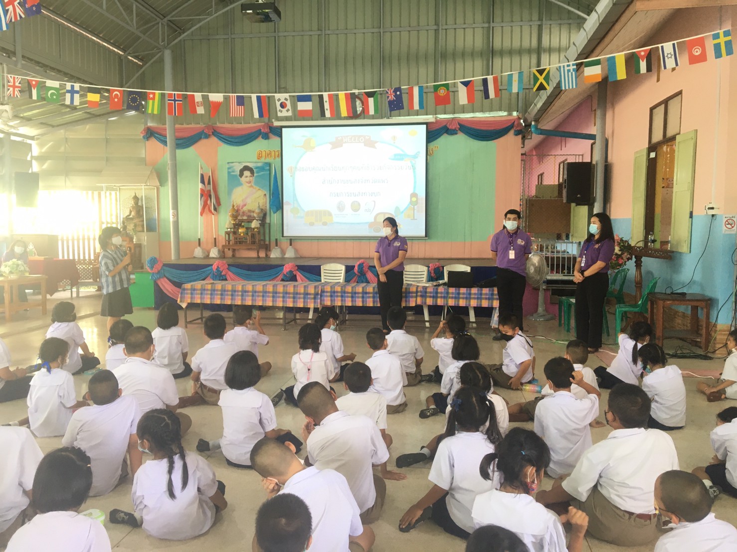 เมื่อวันที่ 14 กันยายน 2565 สำนักงานขนส่งจังหวัดแพร่ นำโดยนายมานพ พุทธวงค์ ขนส่งจังหวัดแพร่ ได้มอบหมายให้นางสาวสุนิสา ปัญญาสุรจิต หัวหน้ากลุ่มวิชาการขนส่ง พร้อมด้วยคณะเจ้าหน้าที่ของสนง.ขนส่งจังหวัดแพร่ มาจัดกิจกรรมอบรมให้ความรู้ทั้งภาคทฤษฎีและภาคปฏิบัติ แก่นักเรียนชั้นประถมศึกษาปีที่ 1-6 โรงเรียนรัฐราษฎร์บำรุงและโรงเรียนวัดเหมืองค่า สังกัด สพป.แพร่ เขต 1 จำนวน 99 คน เพื่อส่งเสริมให้นักเรียน มีความรู้ความเข้าใจ สร้างเจคติที่ดีและมีทักษะเกี่ยวกับวินัยจราจร และการปฏิบัติตามกฎหมาย เพื่อให้เกิดความปลอดภัยในการใช้รถใช้ถนน โดยจัดการอบรมในอาคารโดมของโรงเรียนรัฐราษฎร์บำรุง