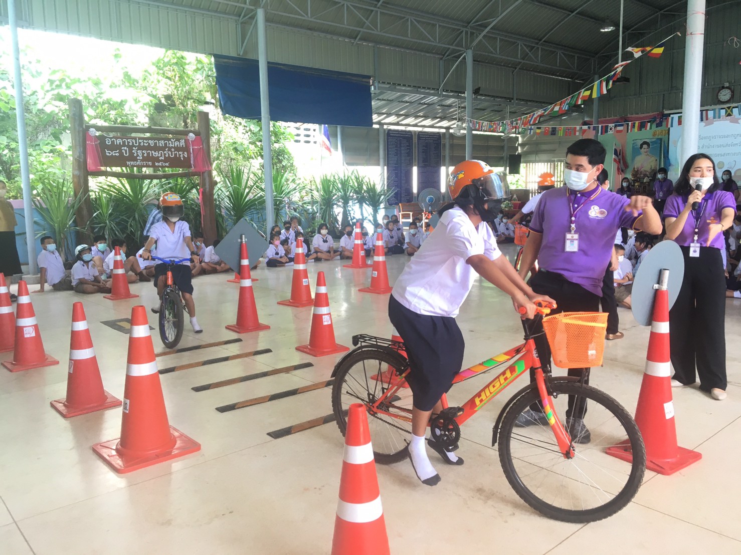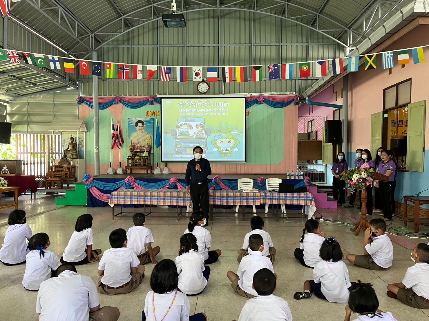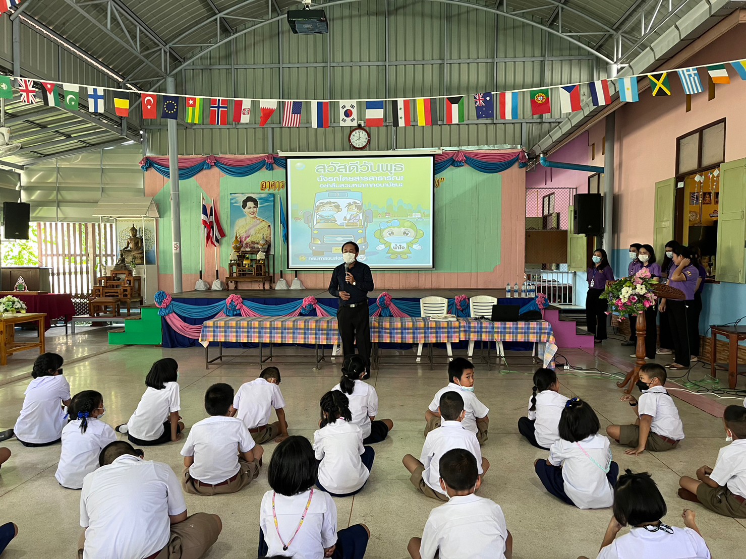 เมื่อวันที่ 14 กันยายน 2565 สำนักงานขนส่งจังหวัดแพร่ นำโดยนายมานพ พุทธวงค์ ขนส่งจังหวัดแพร่ ได้มอบหมายให้นางสาวสุนิสา ปัญญาสุรจิต หัวหน้ากลุ่มวิชาการขนส่ง พร้อมด้วยคณะเจ้าหน้าที่ของสนง.ขนส่งจังหวัดแพร่ มาจัดกิจกรรมอบรมให้ความรู้ทั้งภาคทฤษฎีและภาคปฏิบัติ แก่นักเรียนชั้นประถมศึกษาปีที่ 1-6 โรงเรียนรัฐราษฎร์บำรุงและโรงเรียนวัดเหมืองค่า สังกัด สพป.แพร่ เขต 1 จำนวน 99 คน เพื่อส่งเสริมให้นักเรียน มีความรู้ความเข้าใจ สร้างเจคติที่ดีและมีทักษะเกี่ยวกับวินัยจราจร และการปฏิบัติตามกฎหมาย เพื่อให้เกิดความปลอดภัยในการใช้รถใช้ถนน โดยจัดการอบรมในอาคารโดมของโรงเรียนรัฐราษฎร์บำรุง