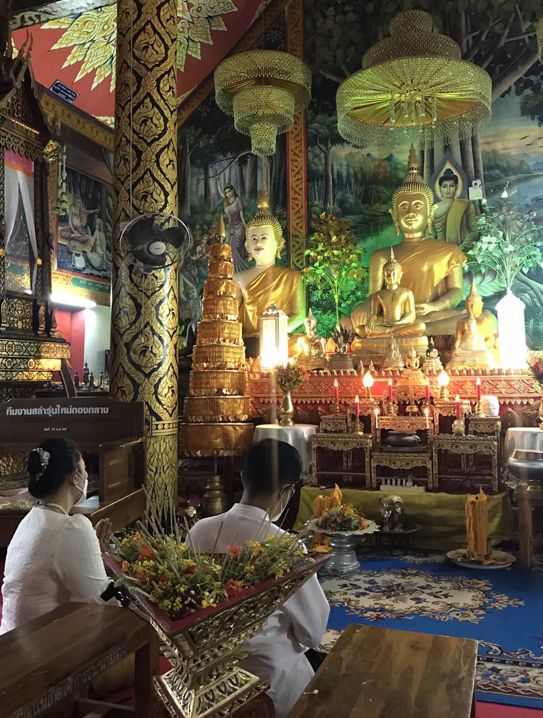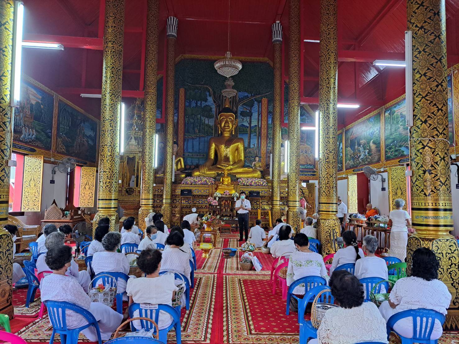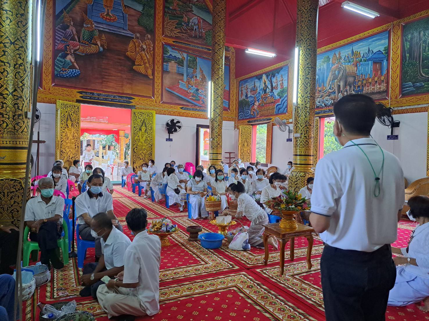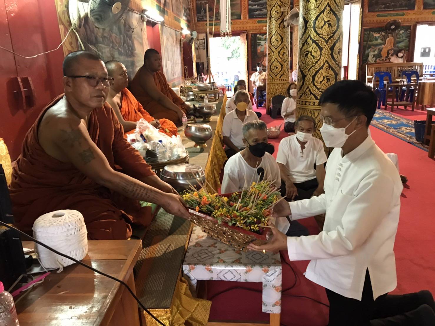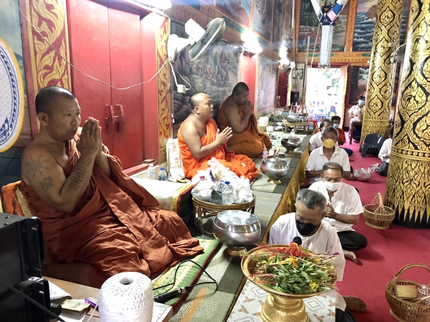 ในเช้าวันเดียวกันนี้วัดคุ้มครองธรรม ตำบลบ้านกลาง อำเภอสอง จังหวัดแพร่ นำโดยหลวงพ่อพระครูมงคลธรรมรักษ์ รองเจ้าคณะอำเภอสอง เจ้าอาวาส จัดทำบุญตักบาตรข้าวสารอาหารแห้งและนายลิขิต จันทร์ยอด กำนันตำบลบ้านกลาง ประธานชมรมกำนันผู้ใหญ่บ้านอำเภอสอง ร่วมทำบุญ และได้ชี้แจงเรื่องต่างๆ ที่เกี่ยวข้องของทางราชการตลอดถึงการเตรียมจัดงานทำบุญทอดกฐินประจำปี 2565 มีคณะศรัทธามาร่วมทำบุญจำนวน 61 คน