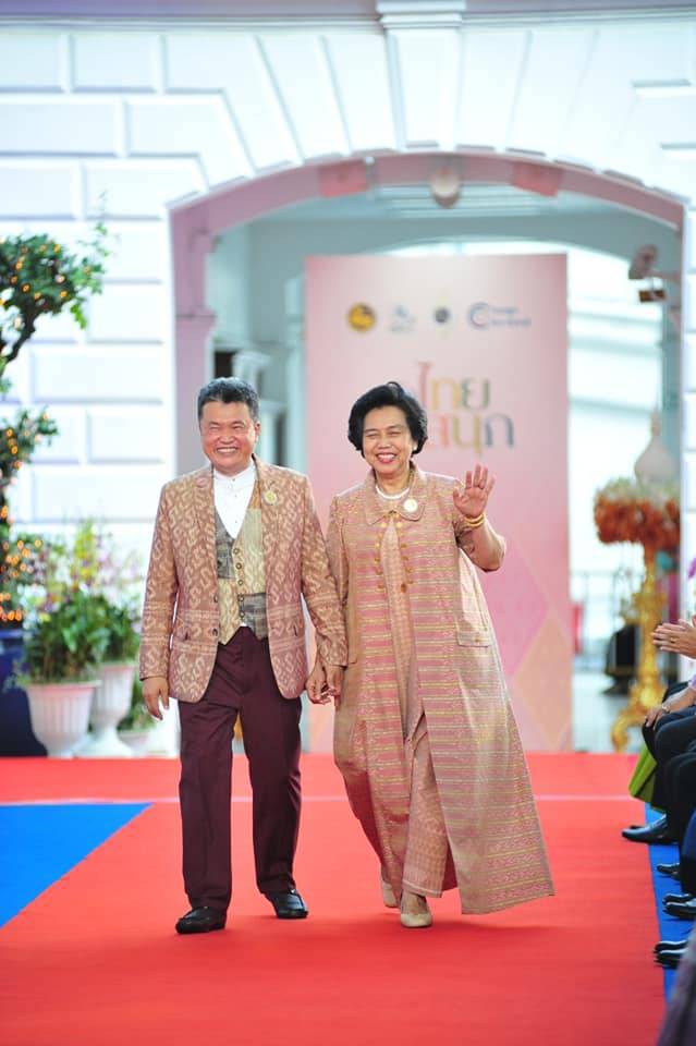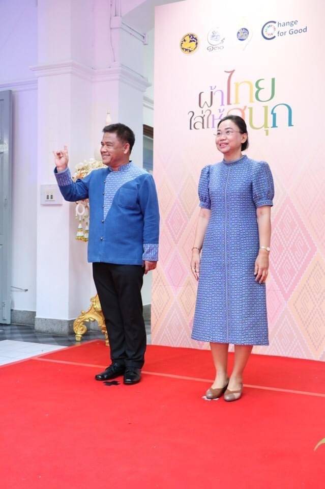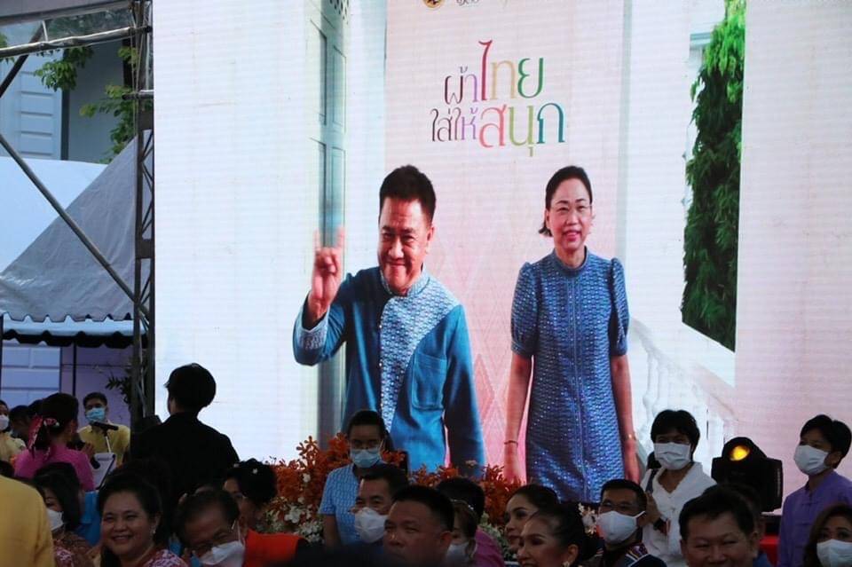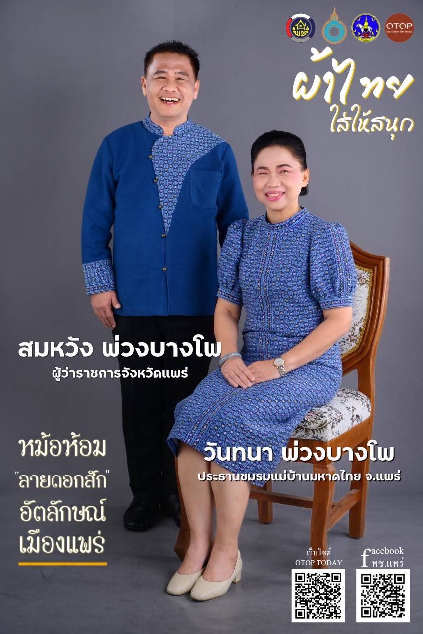 นายสมหวัง พ่วงบางโพ ผู้ว่าราชการจังหวัดแพร่ พร้อมด้วยนางวันทนา พ่วงบางโพ ประธานแม่บ้านมหาดไทยจังหวัดแพร่ ร่วมเดินแบบแสดงชุดผ้าไทย จากเสื้อหม้อห้อมลายดอกสัก เป็นผ้าลายอัตลักษณ์ของจังหวัดแพร่ เป็นผ้าฝ้ายใส่สบาย ราคาไม่แพง สามารถเข้าถึงง่าย ผู้คนทั่วไปนิยมใส่ในชีวิตประจำวัน
