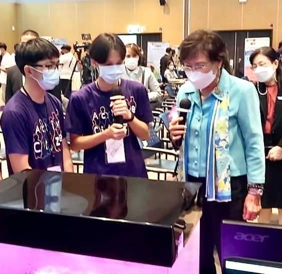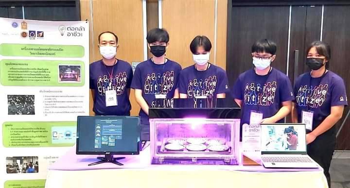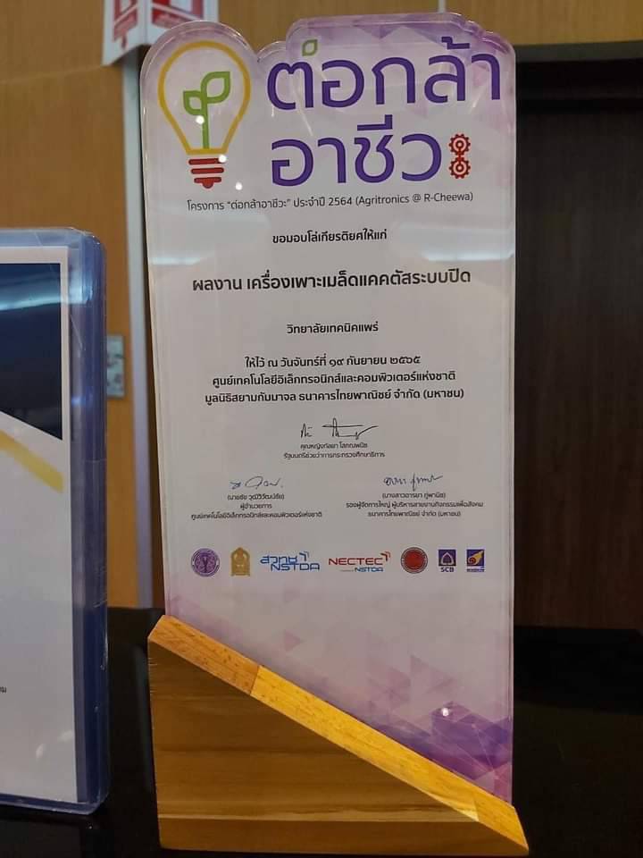 คุณหญิงกัลยา โสภณพนิช รัฐมนตรีช่วยว่าการกระทรวงศึกษาธิการ มอบโล่และเกียรติบัตร ให้ครู และ นักเรียน นักศึกษา แผนกวิชาเทคนิคคอมพิวเตอร์ วิทยาลัยเทคนิคแพร่ โครงการ “ต่อกล้าอาชีวะ” ประจำปี 2564 (Agritronics @ R-Cheewa) ชื่อผลงาน เครื่องเพาะเมล็ดแคคตัสระบบปิด