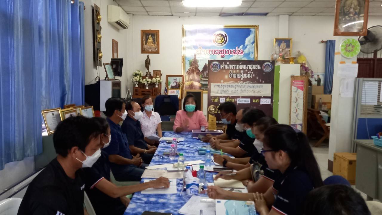 เมื่อวันอังคารที่ 27 กันยายน 2565 เวลา 14.00 น. ณ ห้องสำนักงานพัฒนาชุมชนอำเภอสูงเม่น จังหวัดแพร่ นางผุสดี ดวงเนตร พัฒนาการอำเภอสูงเม่น มอบหมายให้ นางมาลี ชัยธิ นักวิชาการพัฒนาชุมชนชำนาญการ พร้อมด้วย น.ส.อมรรัตน์ กาทองทุ่ง และนางดวงมณี นวลจันทร์ นักวิชาการพัฒนาชุมชนชำนาญการ ประชุมผู้นำอาสาพัฒนาชุมชน (ผู้นำ อช.) อำเภอสูงเม่น ไตรมาส 4/2565 เพื่อสรุปผลการขับเคลื่อนกิจกรรมพัฒนาชุมชน และภารกิจ 10 ประการของผู้นำ อช. ปีงบประมาณ พ.ศ. 2565 โดยมีผู้นำอาสาพัฒนาชุมชน (ผู้นำ อช.) ทุกตำบล ร่วมประชุมในครั้งนี้