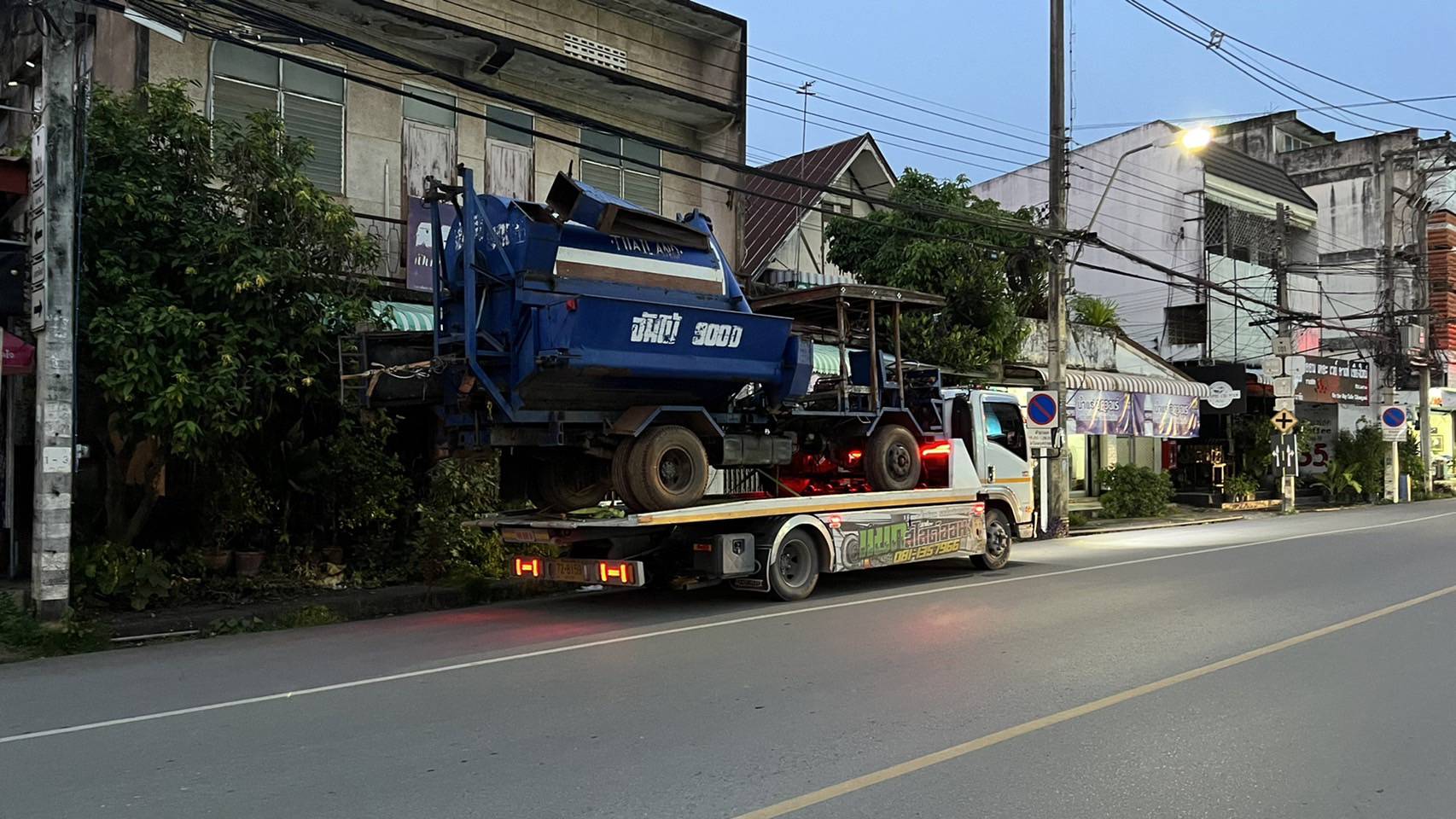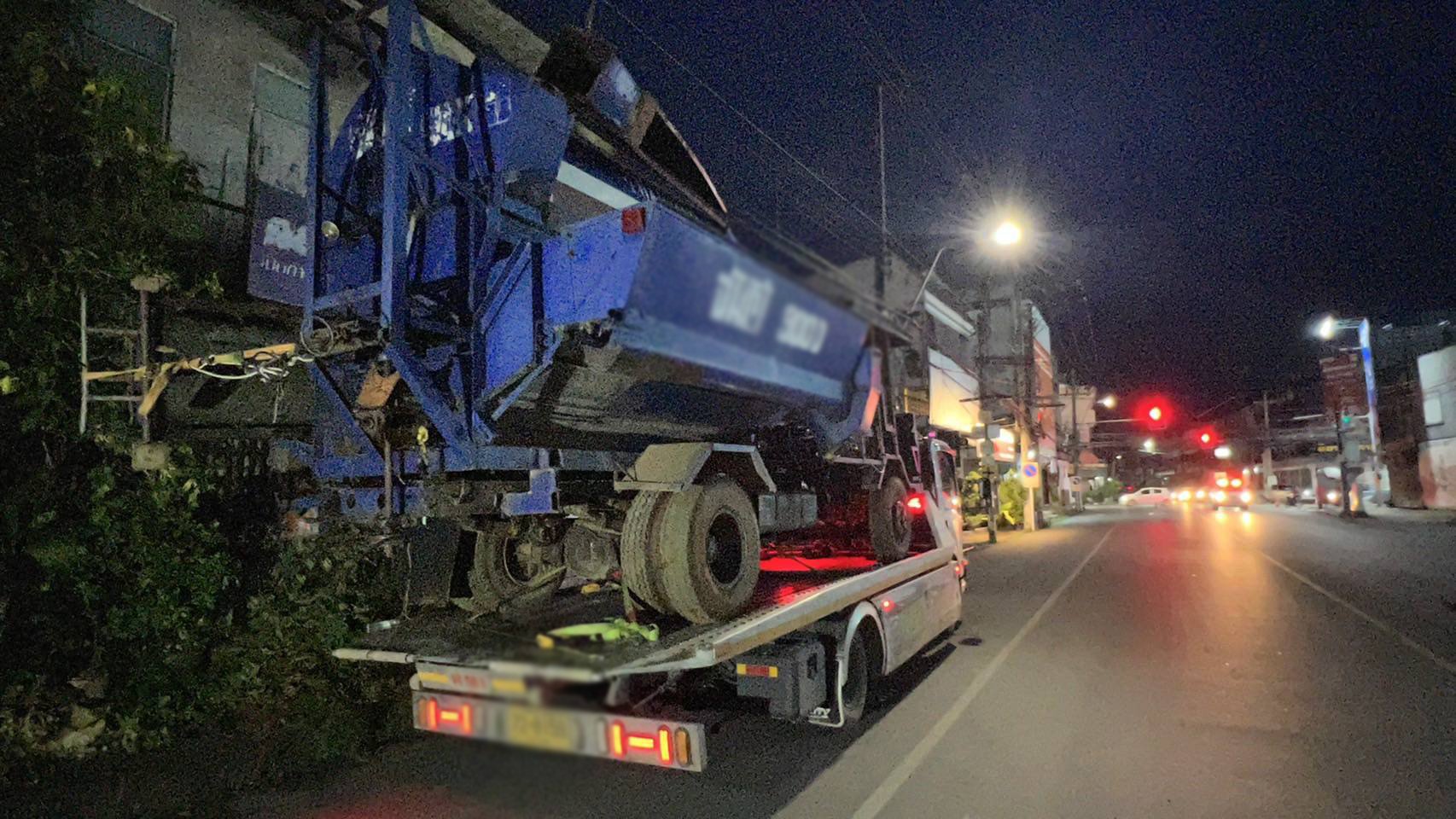พบว่าที่เกิดเหตุเป็น 3 แยกโบ้เบ้ พบเสาไฟฟ้า บริเวณมุมแยกล้มเอียงกระเทเร่ และมีเสาไปต้นเล็กอีกฝั่งถนนหักอีก 1 ต้น ไปกิ่งเสษปูนต่างๆ กระเด็นเต็มถนน ใกล้กกัน พบท่อพ่นฟางซึ่งเป็นส่วนหนึ่งขอรถโม่ข้าวตกอยู่ข้างถนน ห่างออกไปประมาณ 20 เมตร พบมีรถสไลด์ ทะเบียน 72-8159 นครปฐม จอดอยู่ข้างทาง บนรถบรรทุก รถโม่ข้าว(รถนวดข้าว) จอกอยู่ โดยมี นายศุภกิจ อยู่อุ๊น อายุ 42 ปี ชาว ต.คลองใหญ่ อ.สามพราน จ.นครปฐม เป็นคนขับ
