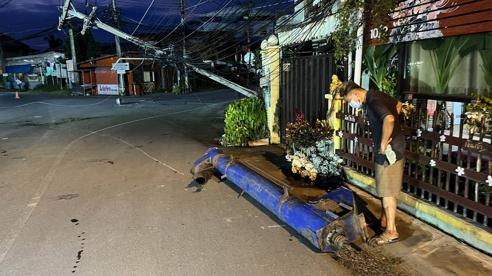 ทางด้าน นายโจ๊ก อายุ 41 ปี เจ้าของร้านไก่ย่างเมืองแพล เผยว่า ระหว่างเกิดเหตุตนเองยังไม่ปิดร้าน แต่นอนแปลเล่นในร้าน จากนั้นได้ยินเสียงดังตึง ก่อนจะเกิดประกายไฟทั่วและเสียงไฟซ็อต เมื่อออกมาดูพบว่าเสาไฟฟ้าล้มหน้าร้าน ตนเองจึงได้จูงลูก-ภรรยา และแม่ภรรยา วิ่งออกมาจากร้าน ซึ่งอยู่หน้าที่เกิดเหตุ เพราะกลังว่าไฟฟ้าจะดูด จากกนั้นได้วิ่งกลับมาเอาคัตเอาท์ลง ซึ่งระหว่างวิ่งกลับมาได้เผลอจับเหล็กเตาย่างไก่ ถูกไฟดูดจนขนลุกแต่เดชะบุญก็ไม่เป็นอะไรมาก