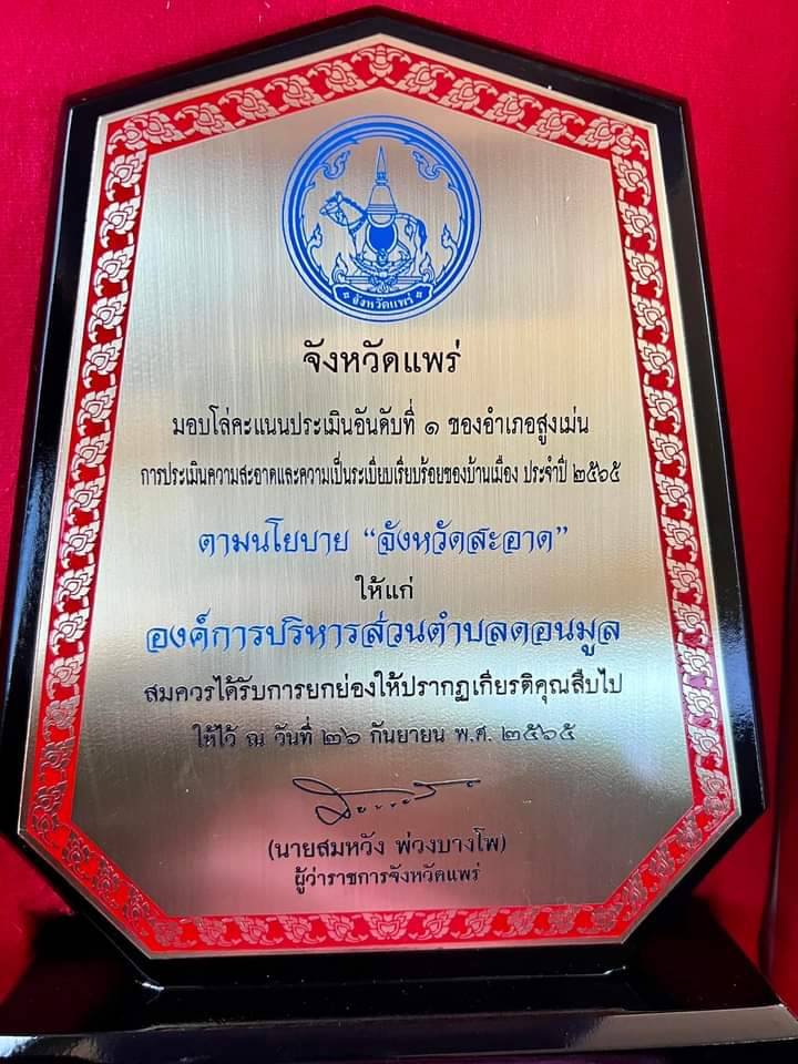 มอบโล่เกียรติยศให้ อบต.ดอนมูล ชนะที่ 1 อำเภอสะอาด และรองอันดับ 1 ระดับจังหวัด