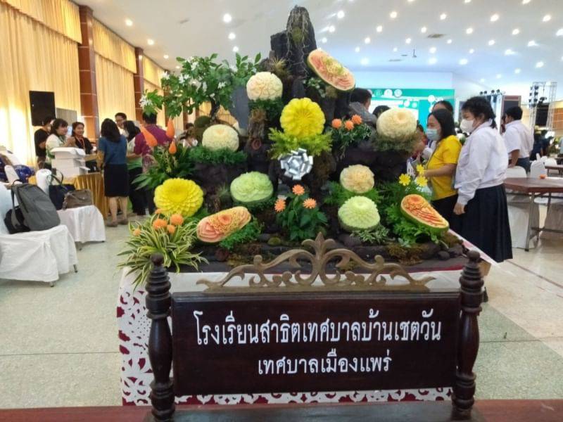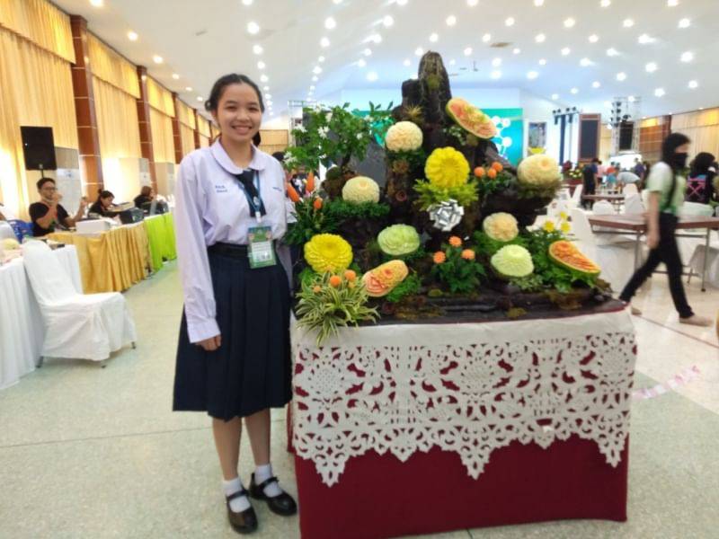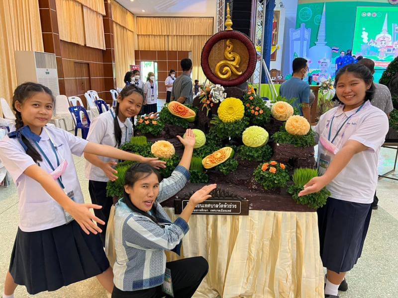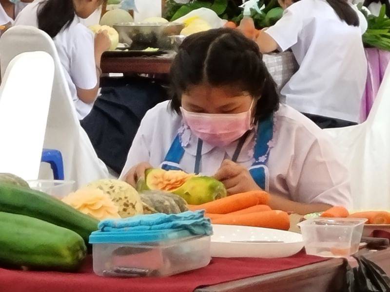 - การประกวดแข่งขันแกะสลักผักและผลไม้ ระดับ ม.1-3 โรงเรียนสาธิตเทศบาลบ้านเชตวัน