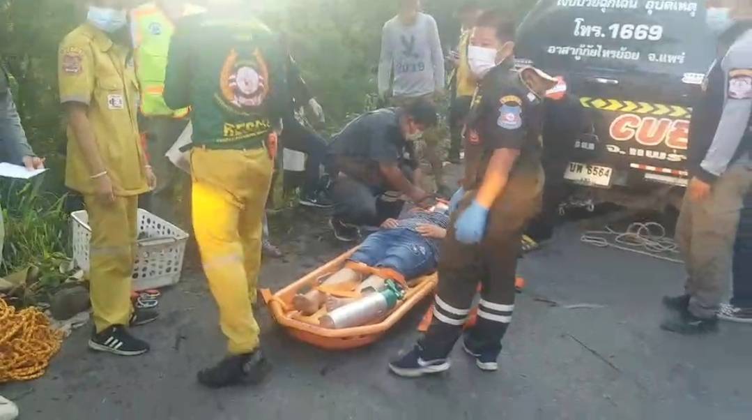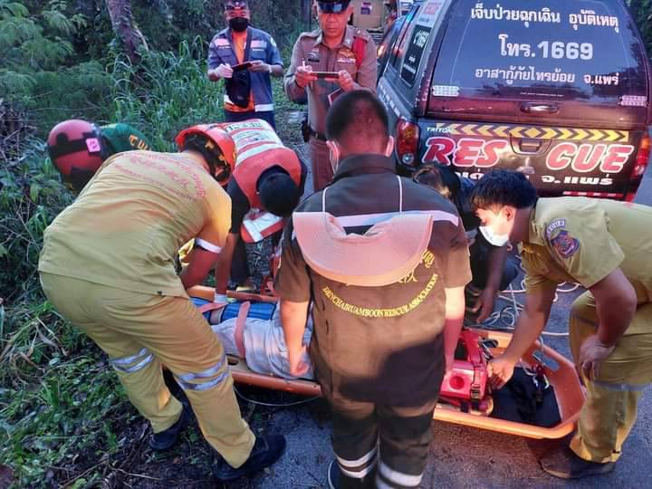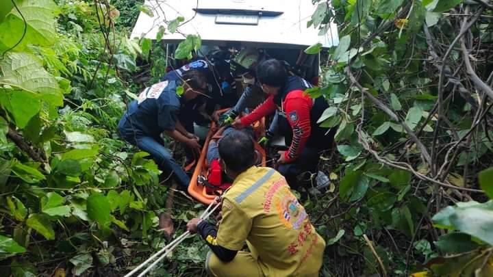 รถตู้จาก จ.พิจิตร จะไปทำบุญที่ จ.เชียงใหม่ ตกเหวลึกที่ จ.แพร่ รอดตายยกคัน