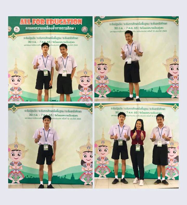 - การแข่งขันการแกะสลักผักและผลไม้ ระดับมัธยมศึกษาปีที่ 1-3 ได้รับรางวัลเกียรติบัตรเหรียญทอง ชนะเลิศ