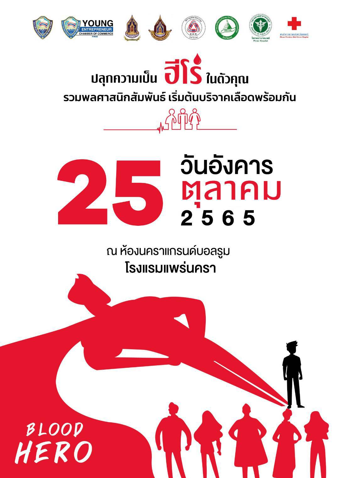 สมาคมสตรีนักธุรกิจ เเละวิชาชีพเเห่งประเทศไทย จังหวัดเเพร่ ร่วมกับเหล่ากาชาดจังหวัดเเพร่โรงพยาบาลเเพร่ สำนักงานวัฒนธรรมจังหวัดแพร่ ขอเชิญชวนพี่น้องชาวเเพร่ร่วมบริจาคโลหิต อานิสงส์จากการบริจาคโลหิตเป็นทานให้โลหิต ให้ชีวิตมาร่วมทำบุญด้วยกัน วันอังคารที่ 25 ตุลาคม 2565 เวลา 09.00 น.-12.00 น. ณ ห้องนคราแกรนด์บอลรูม โรงเเรมเเพร่นครา สำหรับผู้บริจาคโลหิต 60 ท่านเเรกรับเสื้อ Blood Hero เป็นที่ระลึกสนับสนุนโดยร้าน PKP หน้าบิ๊กซี สมาชิกหอการค้าจังหวัดเเพร่