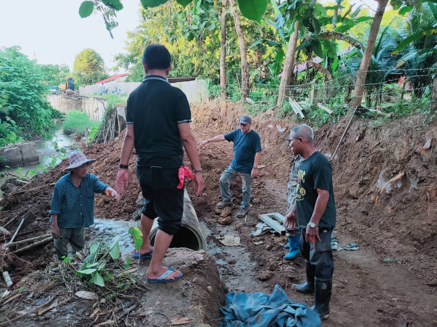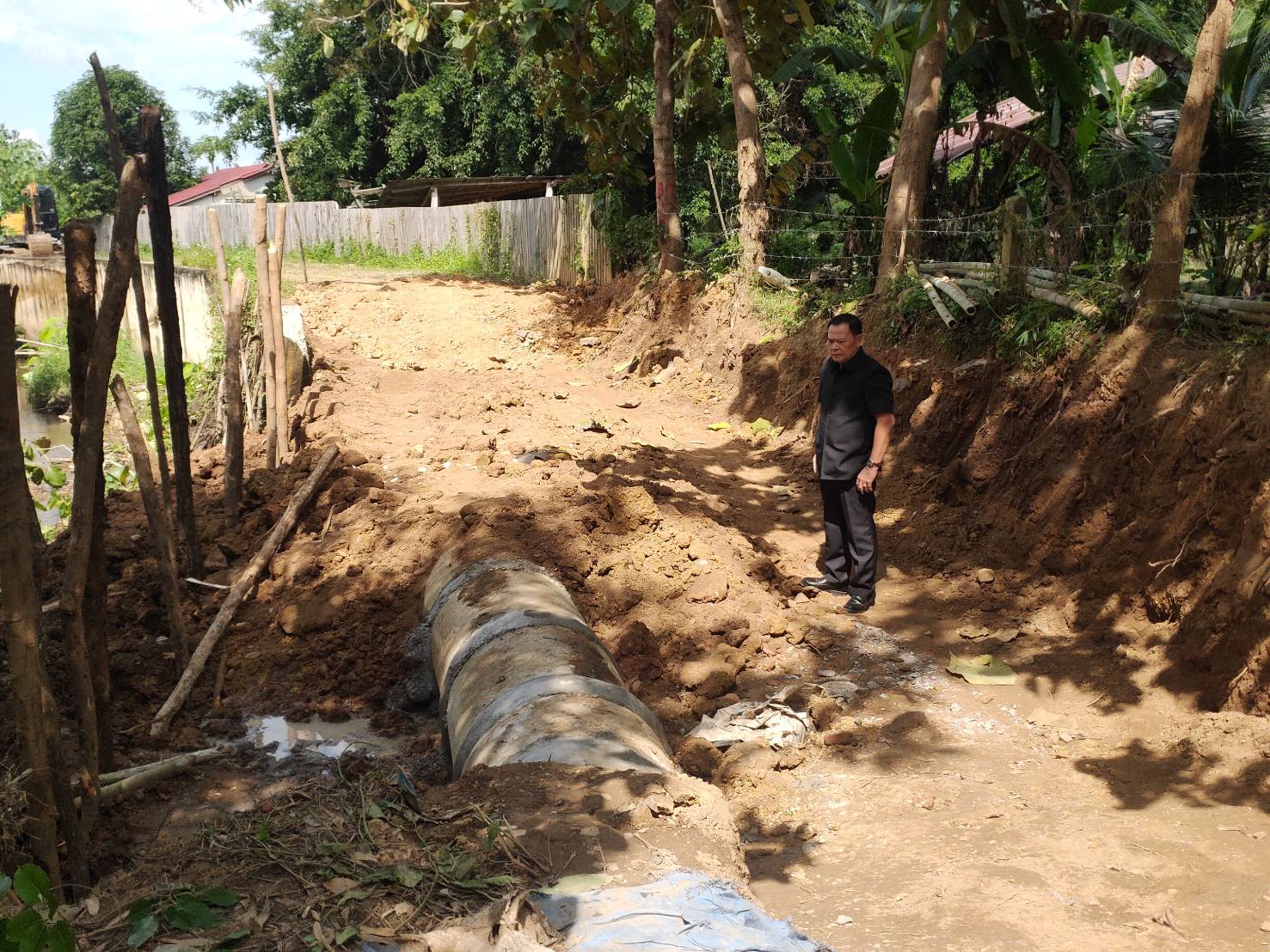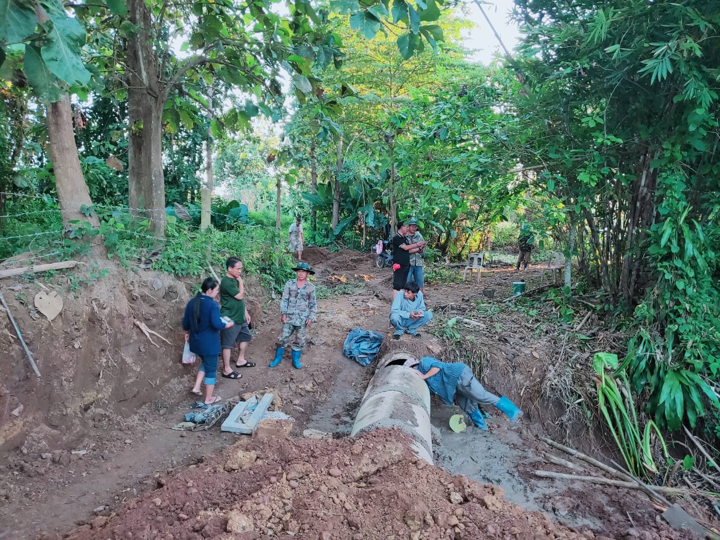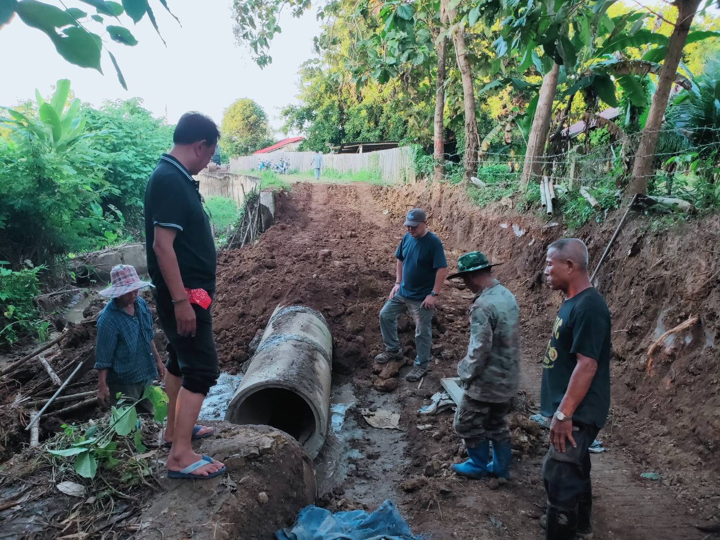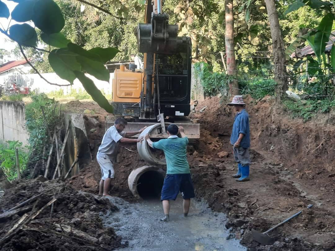 เกษตรกรบ้านกวาง เฮ อบจ.แพร่ ซ่อมแซมท่อส่งน้ำเพื่อการเกษตรและถนน กลับมาใช้ได้ดังเดิม