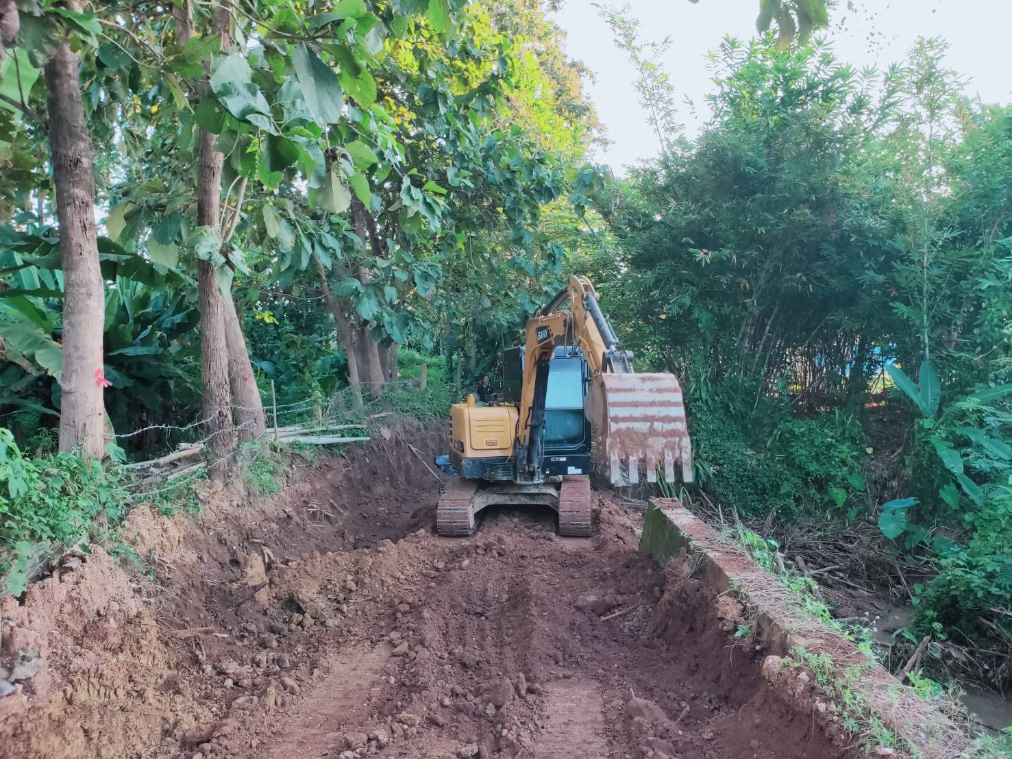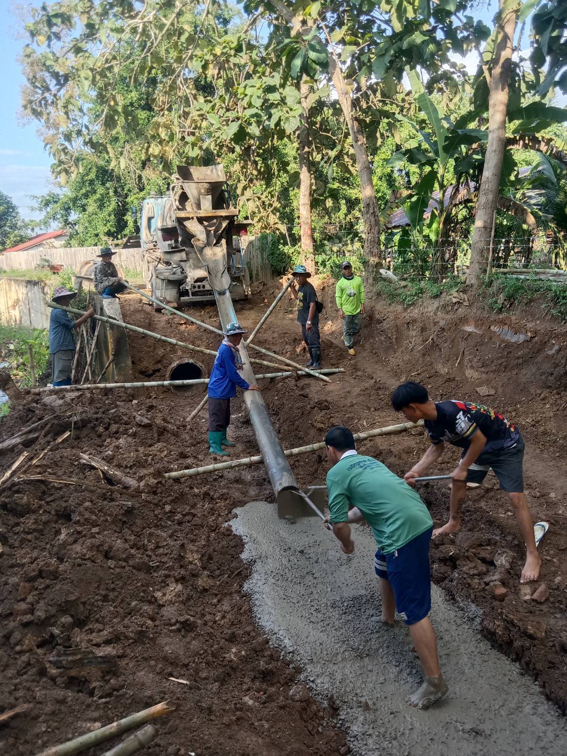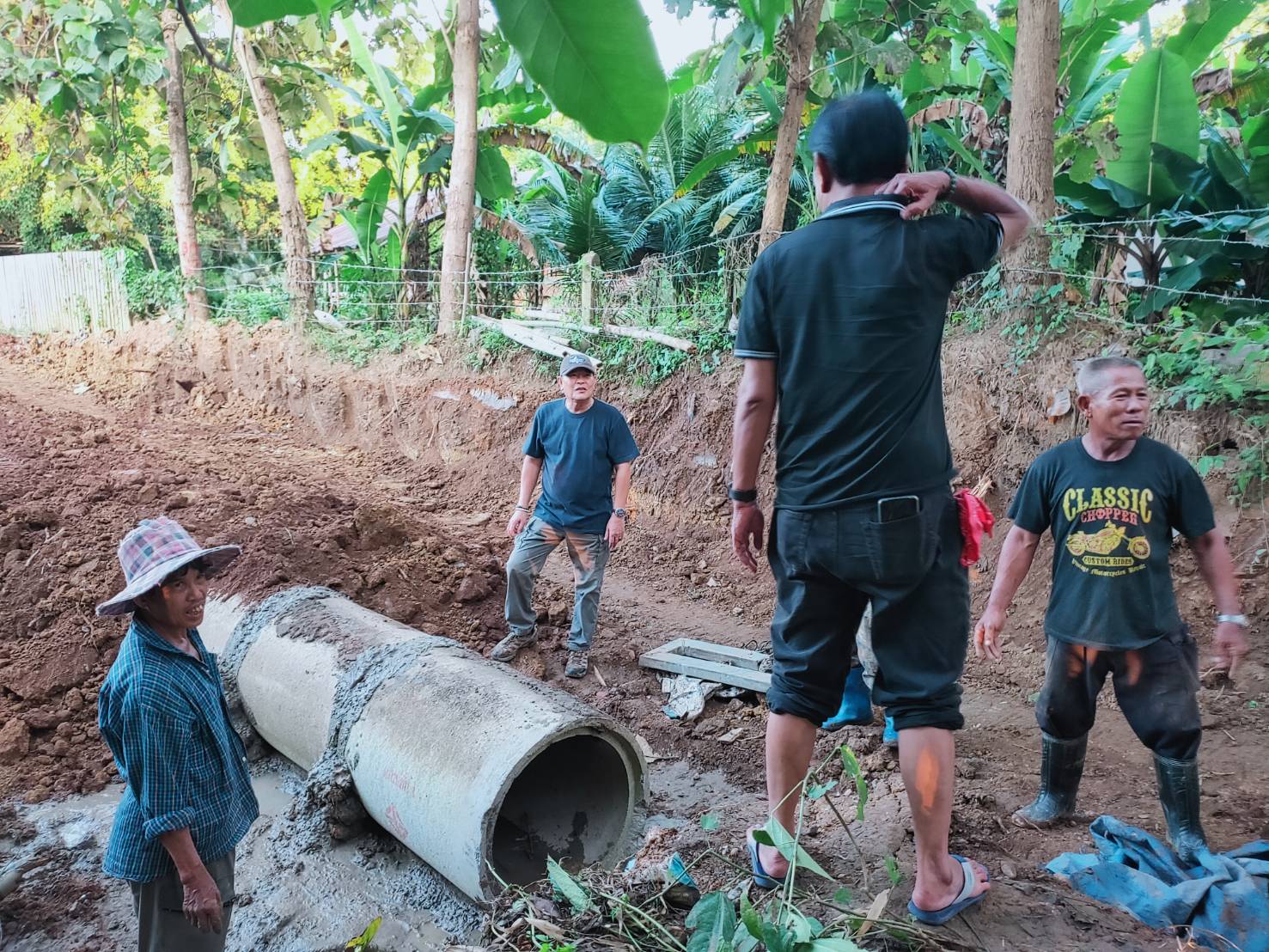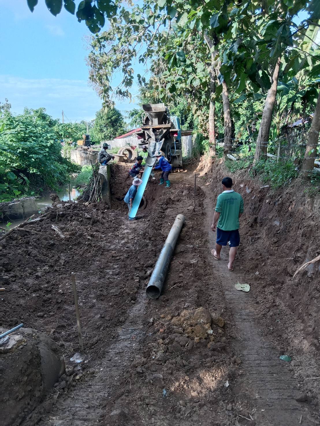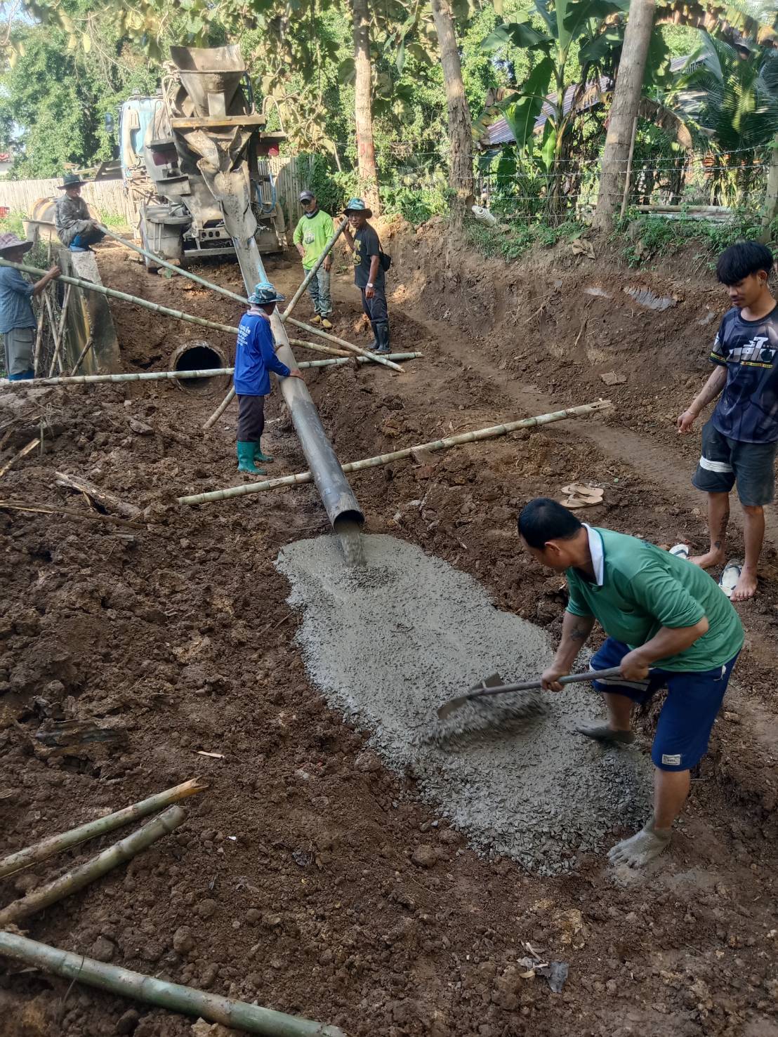 เกษตรกรบ้านกวาง เฮ อบจ.แพร่ ซ่อมแซมท่อส่งน้ำเพื่อการเกษตรและถนน กลับมาใช้ได้ดังเดิม
