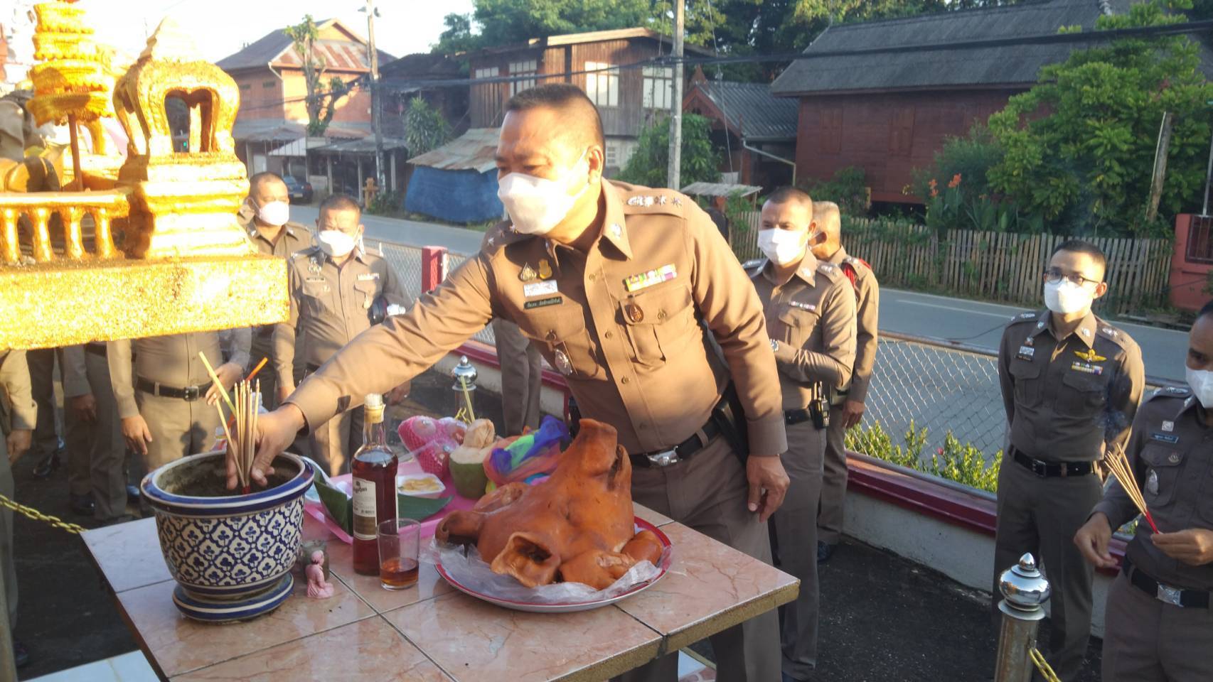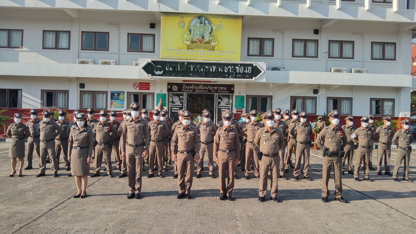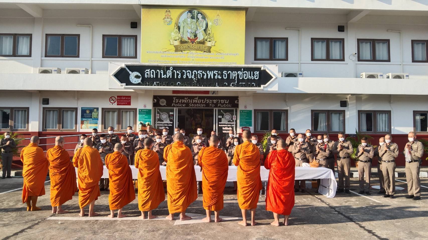 ในส่วนของสภ.พระธาตุช่อแฮ อ.เมืองแพร่ วันที่ 17 ต.ค.2565 เวลา 07.00 น. พ.ต.อ.ทัตเทพ เลิศลักษณ์มีพันธ์ ผกก.สภ.พระธาตุช่อแฮ พ.ต.ท.สมชาย สุขทรัพย์ รอง ผกก.ป.สภ.พระธาตุช่อแฮ , พ.ต.ท.ณฐกฤษ ชัยนันท์ รอง ผกก.(สอบสวน) สภ.พระธาตุช่อแฮ ,พ.ต.ท.ธนา กาวีแดง รอง ผกก..สส.สภ.พระธาตุช่อแฮ , พ.ต.ท.นพดล วัชรกิจโสภณ สวป.สภ.พระธาตุช่อแฮ ,พ.ต.ท.หญิง กิตติยา วรวัฒน์ สว.อก.สภ.พระธาตุช่อแฮ , พ.ต.ท.อมร ขว้างแป้น สว.(สอบสวน) สภ.พระธาตุช่อแฮ พร้อมด้วย ข้าราชการตำรวจ สภ.พระธาตุช่อแฮ ได้ร่วมพิธีไหว้ศาลพระภูมิเจ้าที่ ,ร่วมทำบุญตักบาตร ,เคารพธงชาติ ,อ่านสารวันตำรวจ ,กล่าวคำสัตย์ปฏิญาณ , กล่าวอุดมคติตำรวจ และมอบใบประกาศเกียรติคุณแก่ผู้ช่วยเหลือสนับสนุนกิจการตำรวจ เนื่องในวันสถาปนาสำนักงานตำรวจแห่งชาติ