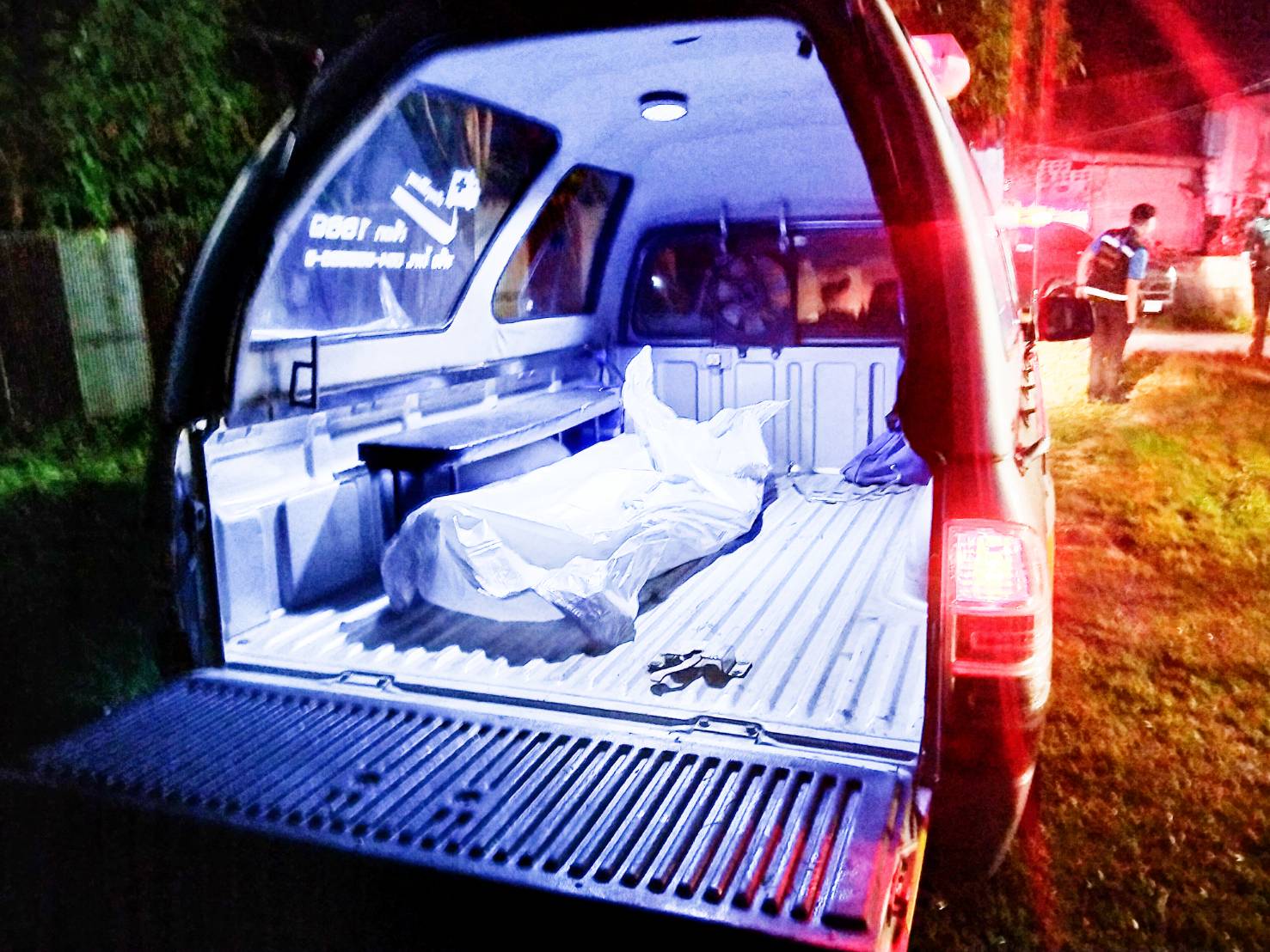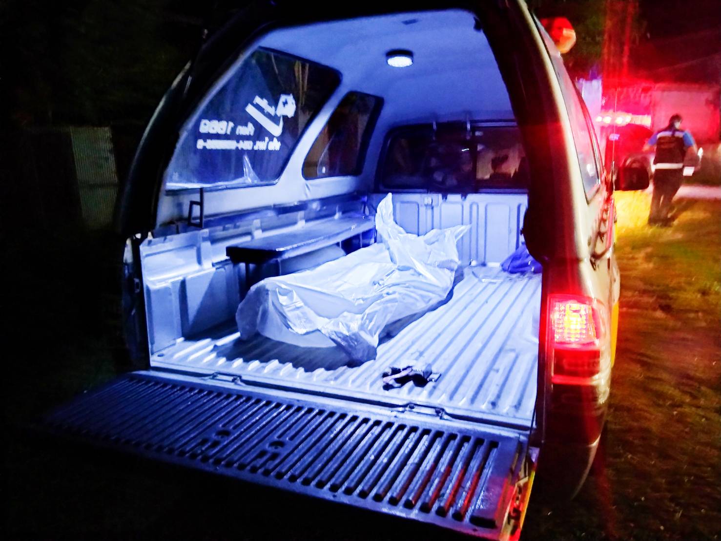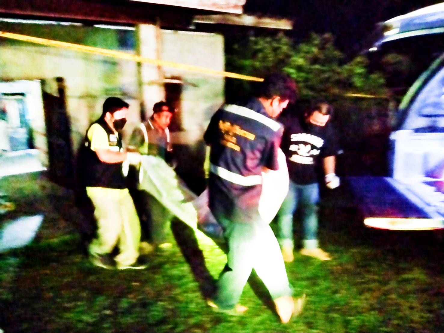 สถานที่พบศพนายกันยา สวมกางเกงขาสั้น ไม่ใส่เสื้อ ถูกยิงด้วยอาวุธปืนลูกซองเข้าที่หน้าอกทะลุด้านหลัง และศพของ น.ส.แพรวพรรณ อายุ 27 ปี ภรรยาผู้ตายสวมใส่กางเกงสามส่วนสีน้ำตาล สวมใส่เสื้อสีแดง ถูกยิงที่ราวนมด้านซ้ายทะลุหลัง นอนจมกองเลือดเสียชีวิตอยู่ใกล้กัน เลือดไหลแดงเต็มห้องครัวไปหมดเหม็นคาวคละคลุ้ง