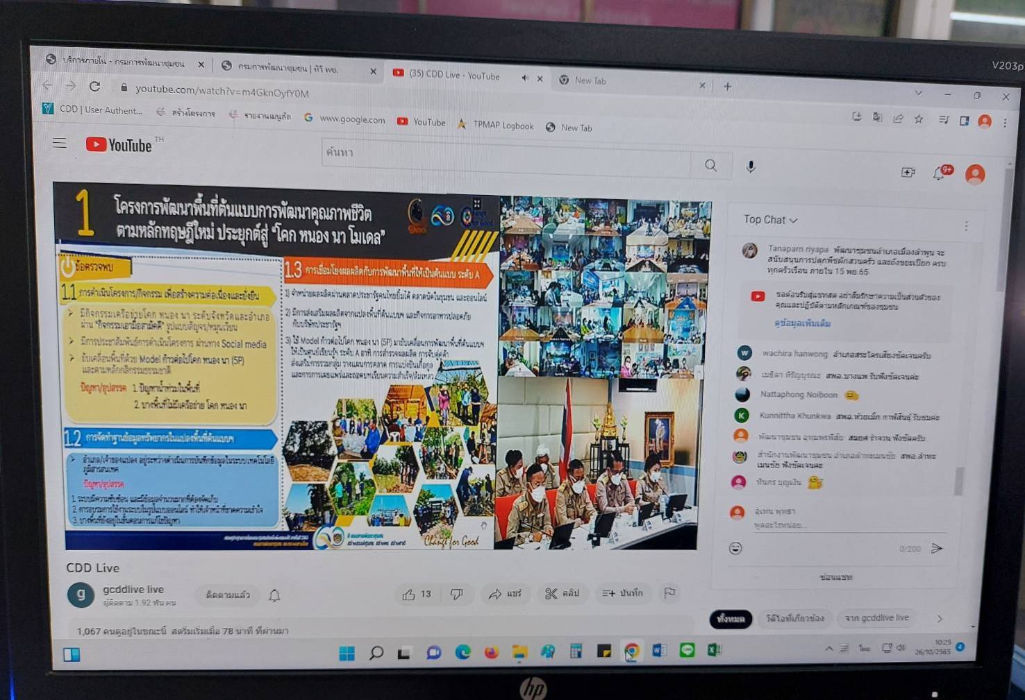 เมื่อวันพุธที่ 26 ตุลาคม 2565 เวลา 09.30 น. ณ ห้องสำนักงานชุมชนอำเภอสูงเม่น นางผุสดี ดวงเนตร พัฒนาการอำเภอสูงเม่น จ.แพร่ พร้อมด้วยเจ้าหน้าที่สำนักงานพัฒนาชุมชนอำเภอสูงเม่น ร่วมรับฟังการประชุมกรมการพัฒนาชุมชน ครั้งที่ 10/2565 ผ่านระบบ TV พช. เพื่อรับฟังนโยบาย/ข้อสั่งการ จากอธิบดีกรมการพัฒนาชุมชนและผู้บริหารของกรมการพัฒนาชุมชน เพื่อเตรียมความพร้อมในการขับเคลื่อนกิจกรรมพัฒนาชุมชนต่อไป