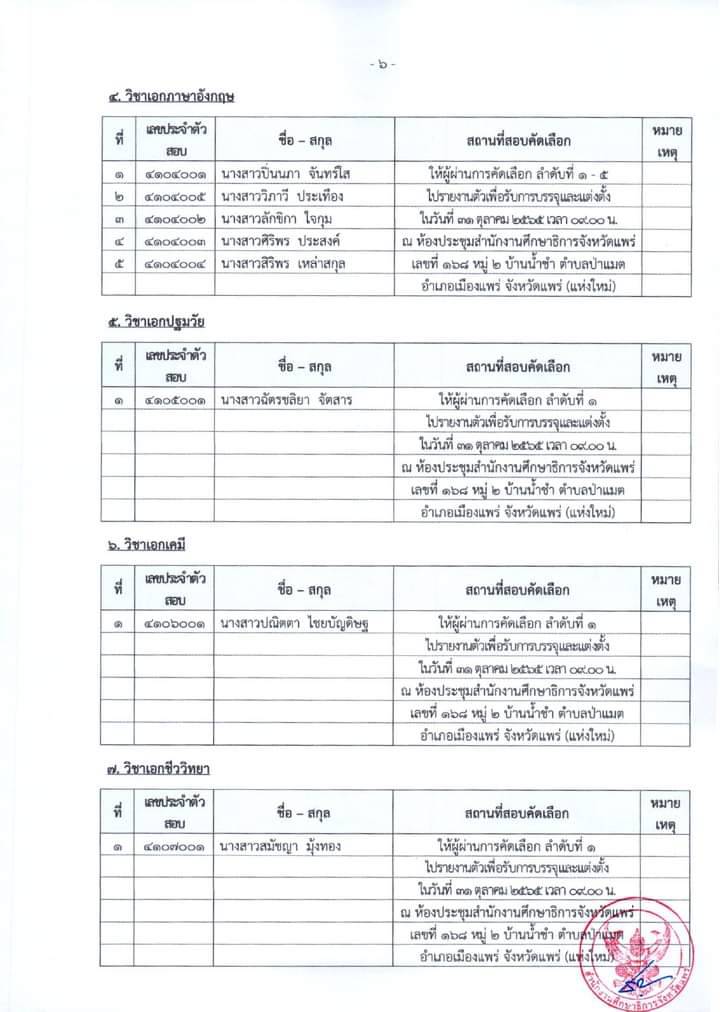 กศจ.แพร่ ประกาศรายชื่อผู้ผ่านการคัดเลือกครูพัฒนาท้องถิ่น