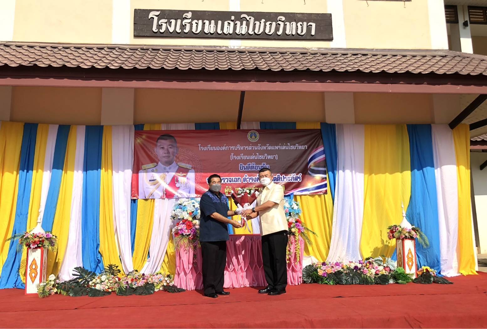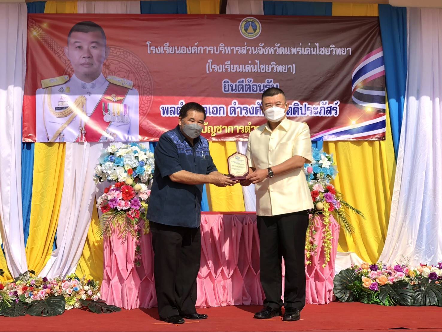ให้การต้อนรับ พล.ต.อ.ดำรงศักดิ์ กิตติประภัสร์ ผู้บัญชาการตำรวจแห่งชาติ คนที่ 13 และคณะ ที่เดินทางมาเยี่ยมเยือนโรงองค์การบริหารส่วนจังหวัดแพร่เด่นไชยวิทยา ทั้งนี้ นายเสรี ทรงศักดิ์ รองนายกองค์การบริหารส่วนจังหวัดแพร่ ตัวแทนนายกองค์การบริหารส่วนจังหวัดแพร่ ได้มอบโล่เกียรติยศ “ศิทย์เก่าผู้ทรงเกียรติยศ” ให้กับ พล.ต.อ.ดำรงศักดิ์ กิตติประภัสร์ ผู้บัญชาการตำรวจแห่งชาติ คนที่ 13 เมื่อครั้งที่ได้เข้ารับการศึกษา ณ โรงเรียนเด่นชัยวิทยา ระหว่าง ปี พ.ศ. 2512 ถึง ปี พ.ศ. 2516 ซึ่งโรงเรียนองค์การบริหารส่วนจังหวัดแพร่เด่นไชยวิทยา เดิมชื่อ โรงเรียนเด่นไชยวิทยา (ซื่อ จือ อิง เซี๊ยะ เซี้ยว) ก่อตั้งโดยมูลนิธิชาวไทยเชื้อสายจีน อำเภอเด่นชัย เมื่อปี พ.ศ. 2489 สังกัดกองศึกษาเอกชน กระทรวงศึกษาธิการ ต่อมาปี พ.ศ. 2550 ทางมูลนิธิฯ ได้ยกกิจการโรงเรียนให้ องค์กรบริหารส่วนจังหวัดแพร่ ดำเนินมาจนถึงปัจจุบัน จัดสอนตั้งแต่ระดับ ประถมศึกษาปีที่ 1 ถึงชั้นมัธยมศึกษาปีที่ 3 ในปีการศึกษา 2565 มีนักเรียนทั้งหมด 269 คน มีครูและบุคลากรประจำการทั้งหมด 30 คน ปัจจุบันมี นายจันทรคราส สุรินทร์เลิศ เป็นผู้อำนวยการสถานศึกษา