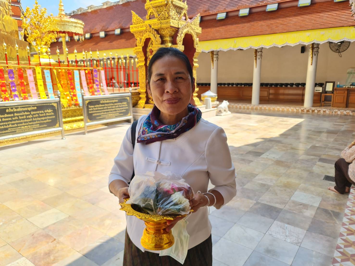 เนื่องจากตนเป็นคนไทย ก็อยากให้ลูกได้เรียนรู้วัฒนธรรมประเพณีไทย จึงสอนมาตั้งแต่เด็กที่การกราบไหว้ และเราทั้ง 3 คน คือ MR. Frank Lang ตัวดิฉันและลูกชาย MR. Benjamin Lang เกิดปีขาล ตนจึงพามาไหว้พระธาตุปีเกิดทุกปี ตั้งแต่ลูกชายเล็กๆ บางปีมาเมืองไทย 2 ครั้ง ก็จะต้องมากราบขอพรที่วัดพระธาตุช่อแฮ พระอารามหลวง และโชคดีที่ลูกชาย เรียนรู้และรับวัฒนธรรมอันดีงามของไทย สมกับที่ตนต้องการ ส่วนบ้านพักของตนอยู่ที่นิวยอร์ สหรัฐอเมริกา